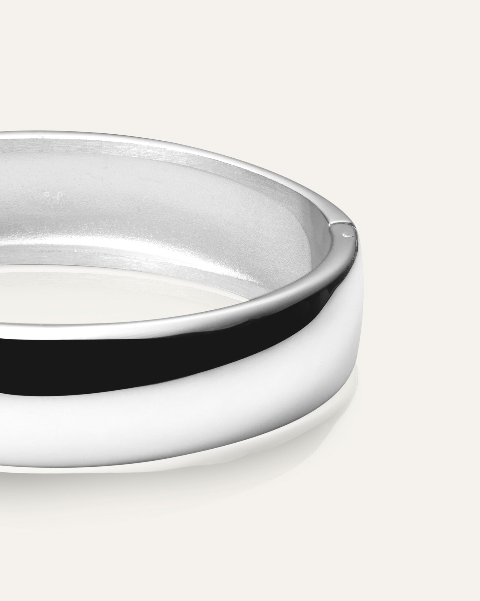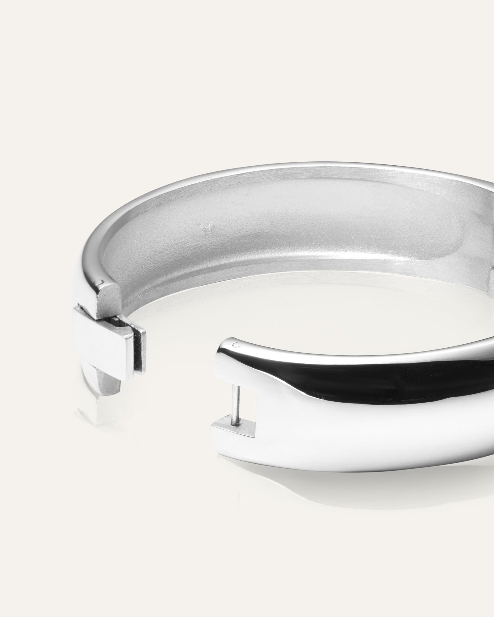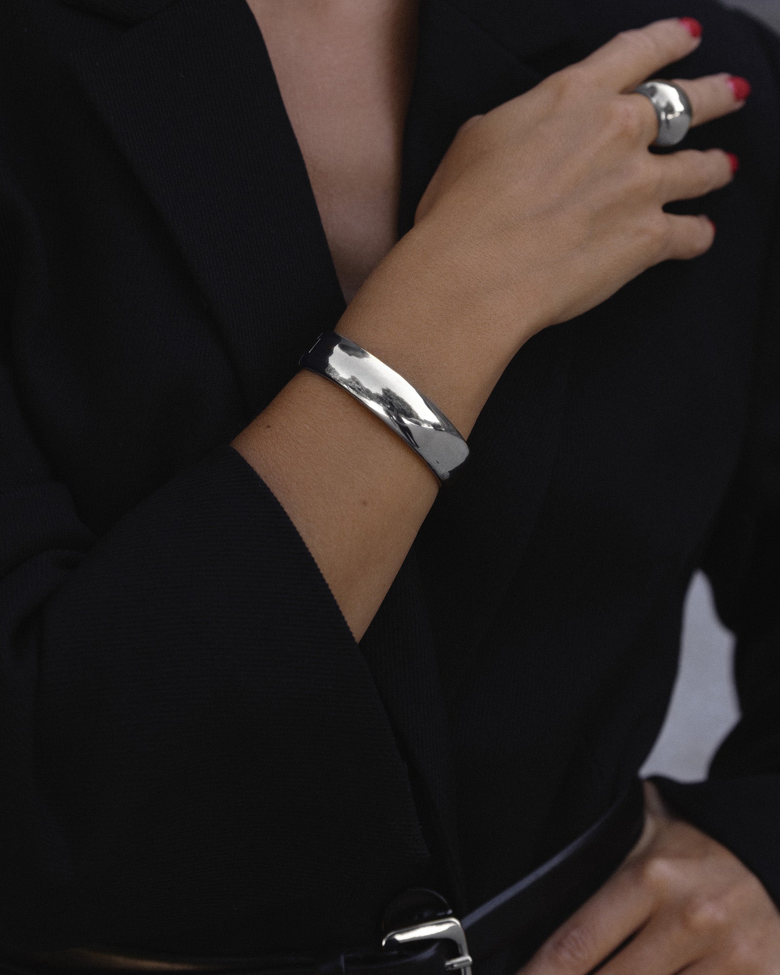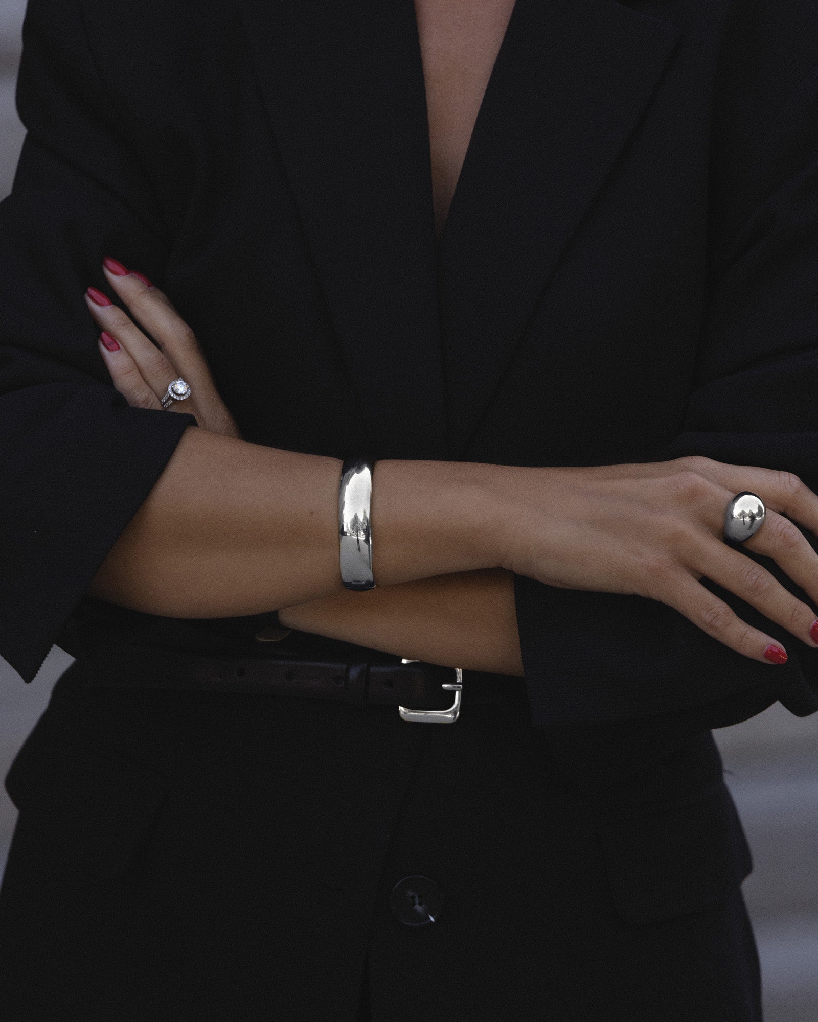 La Pulsera Alexandra es una pulsera ancha y pulida con un diseño distintivo: perfecta como pieza llamativa.