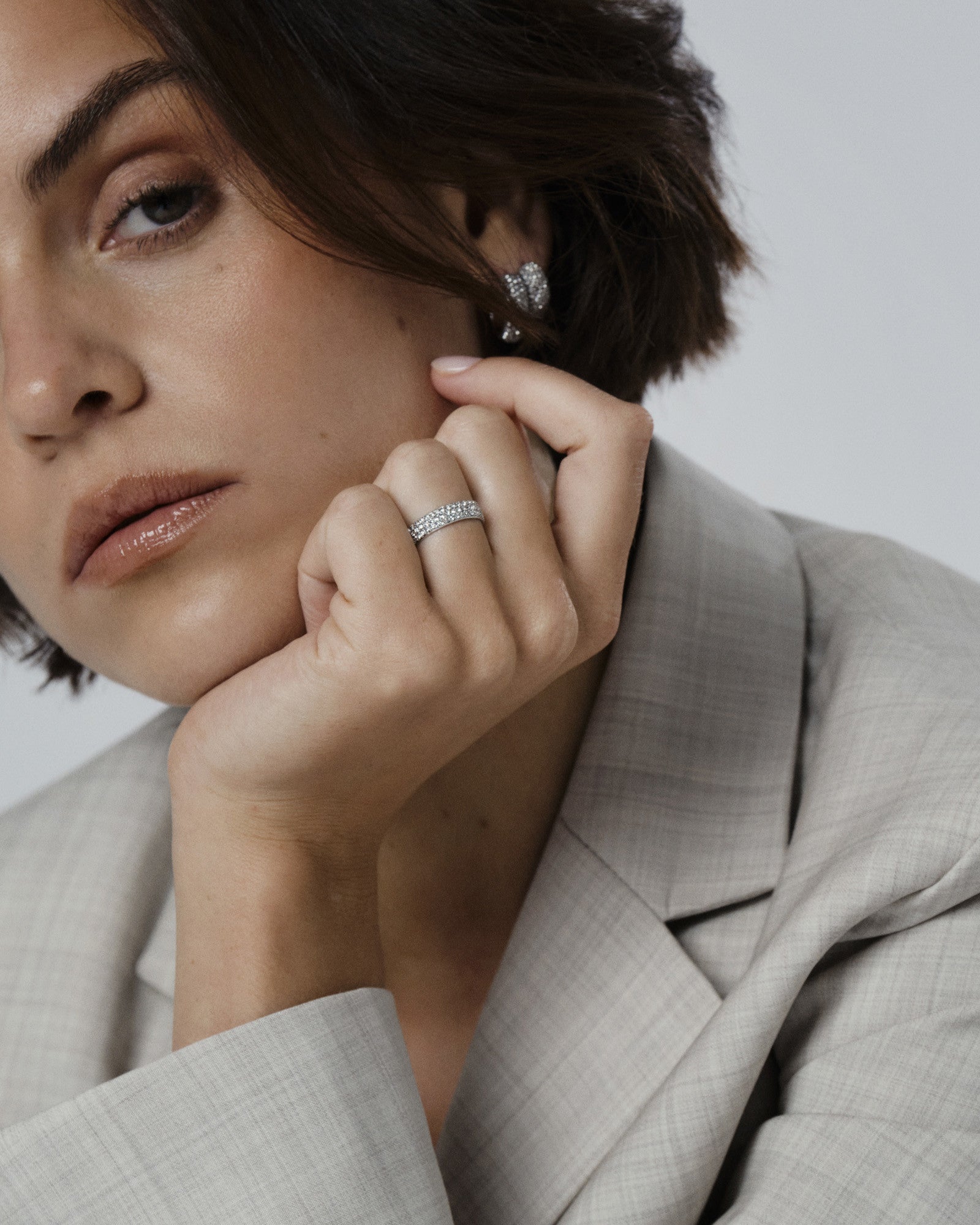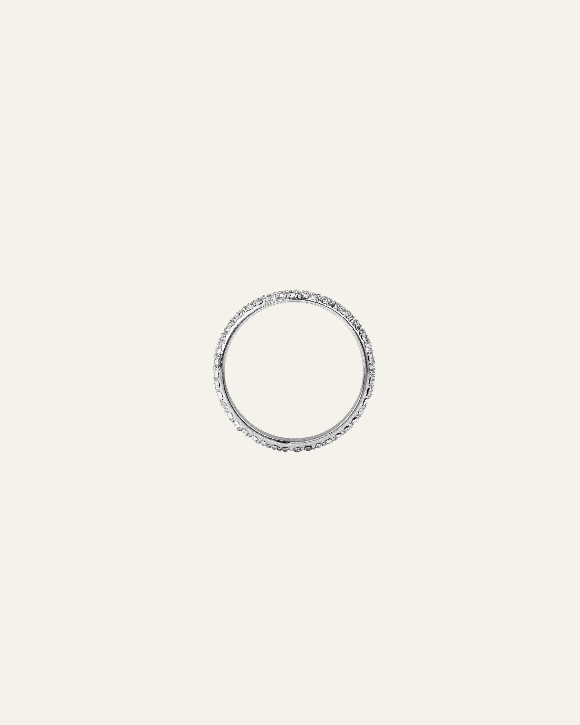 Un anillo clásico decorado con piedras de circonita cúbica alrededor de toda la superficie. Perfecto para llevar solo o combinar con otros anillos para un look apilado. Hecho de acero inoxidable macizo con baño PVD, es resistente al agua y duradero. Llévalo todos los días: nada, dúchate y entrena sin preocuparte de que pierda su color.