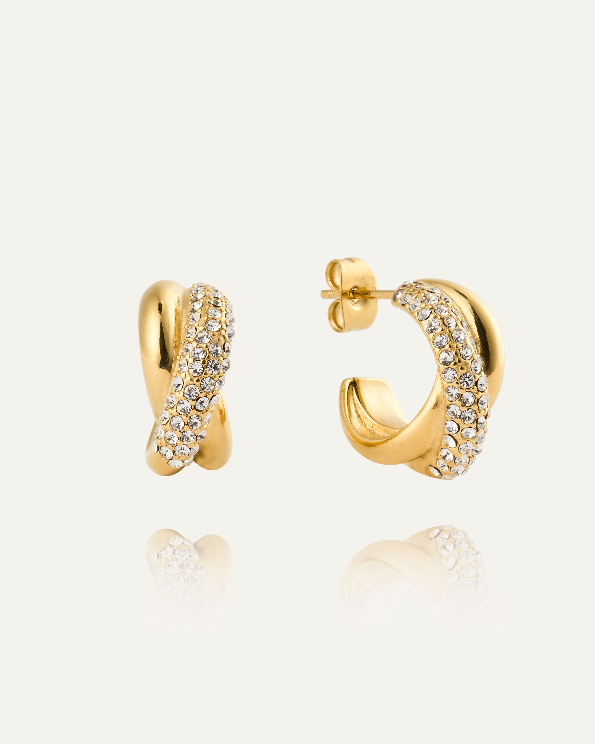 Brillo cálido en un diseño delicado. Los Aros Aurora Gold combinan un estilo de aro clásico con piedras Preciosa blancas para una expresión distintiva pero suave: igual de hermosos solos que combinados con otras joyas.