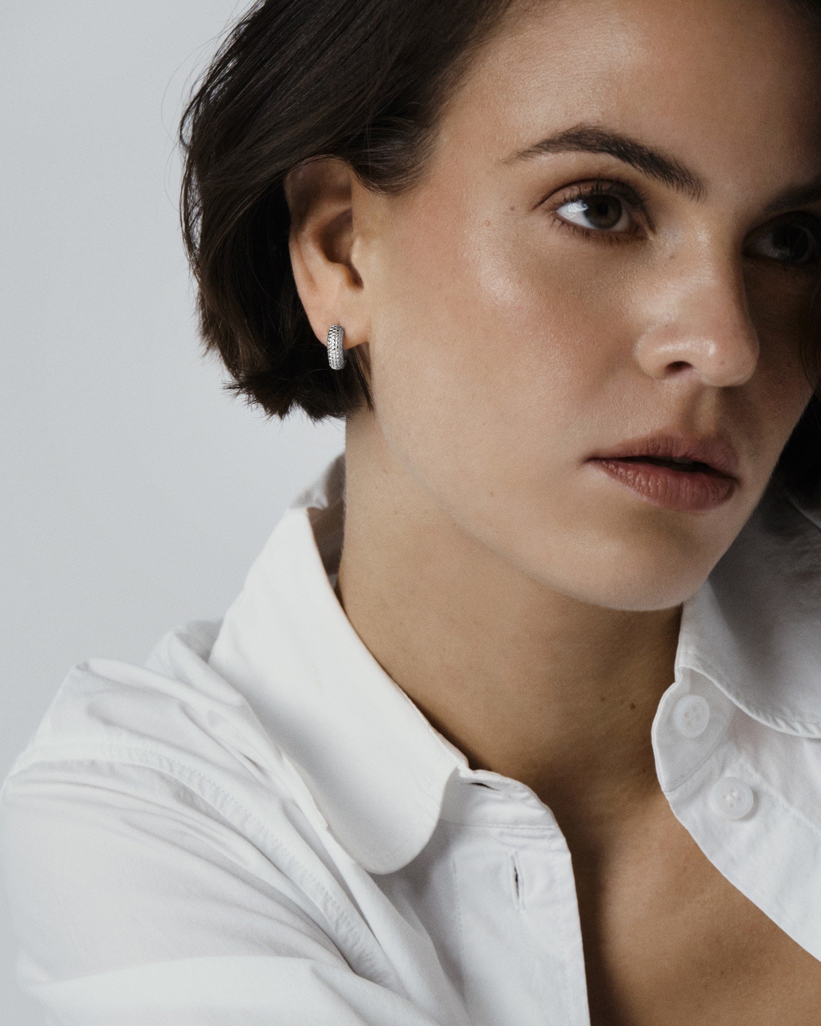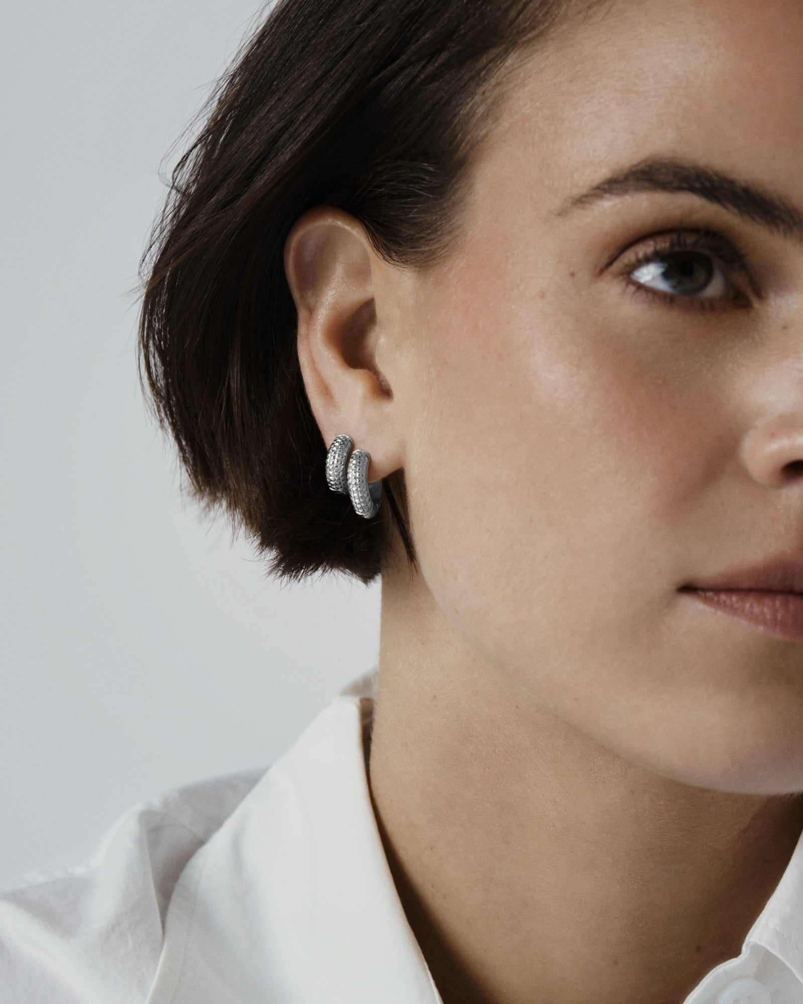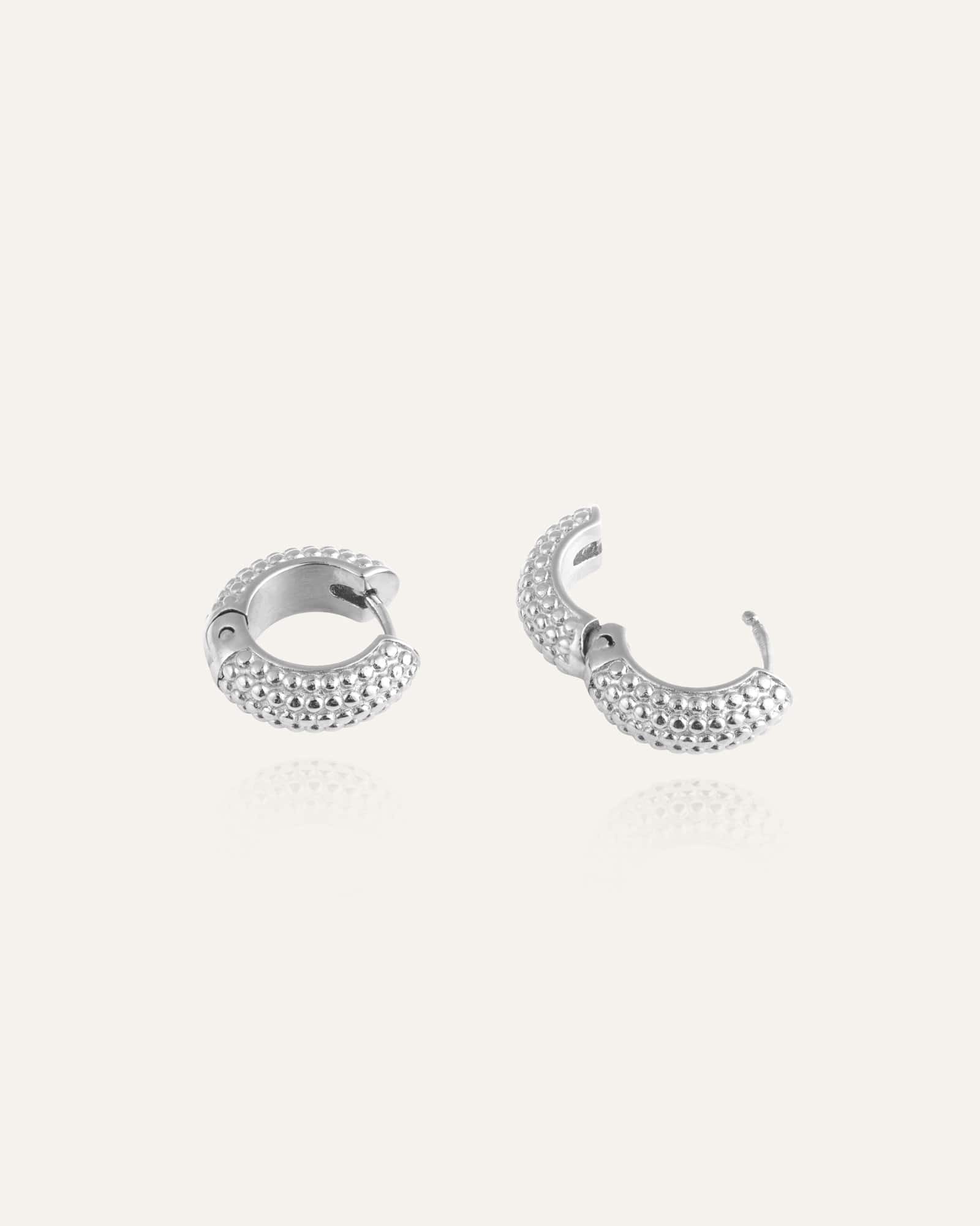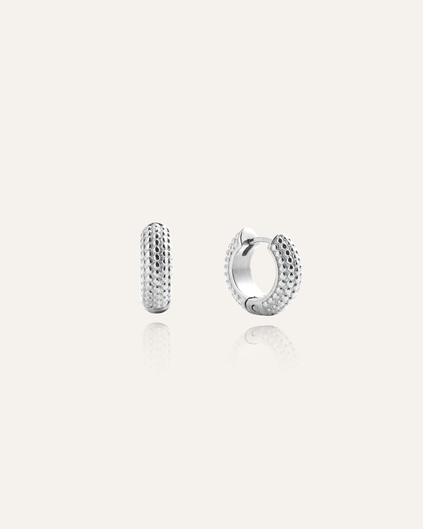Beaded Hoops presentan un diseño único con un patrón detallado que los distingue de los clásicos Everyday Hoops. Hechos de acero inoxidable macizo, son duraderos y resistentes al agua, asegurando que conservan su color y estilo con el tiempo.