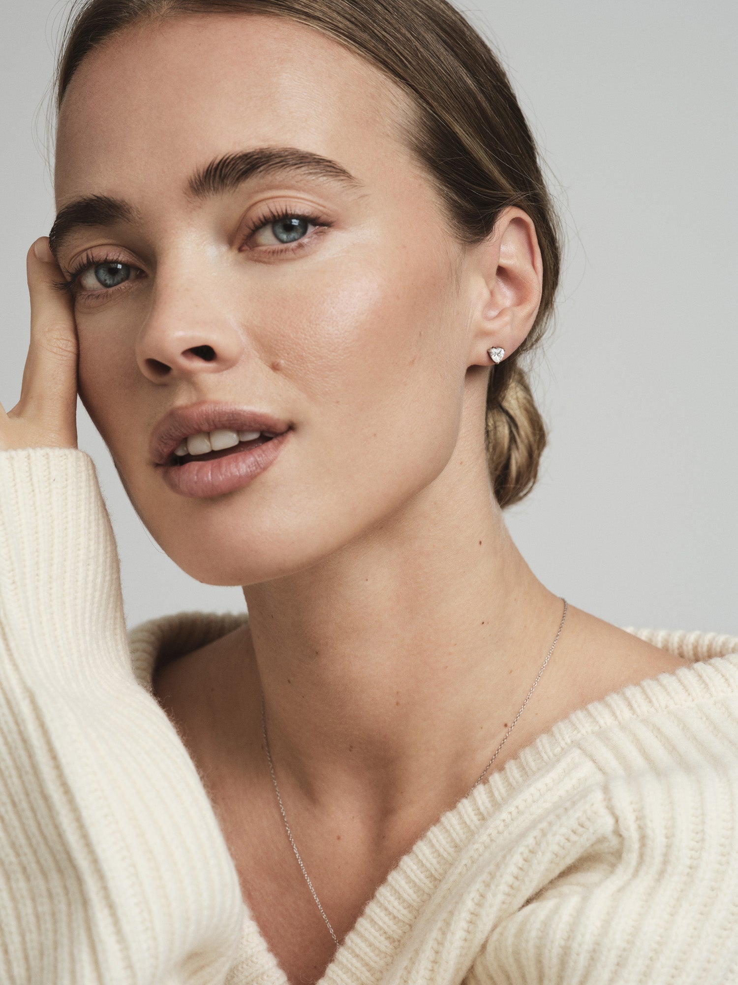 Elegancia atemporal en un diseño minimalista. Los Pendientes Bonne White son pendientes discretos y brillantes con piedras blancas en forma de corazón. Elaborados en acero inoxidable con revestimiento PVD, son duraderos y resistentes al agua, asegurando que mantengan su color y brillo con el tiempo.