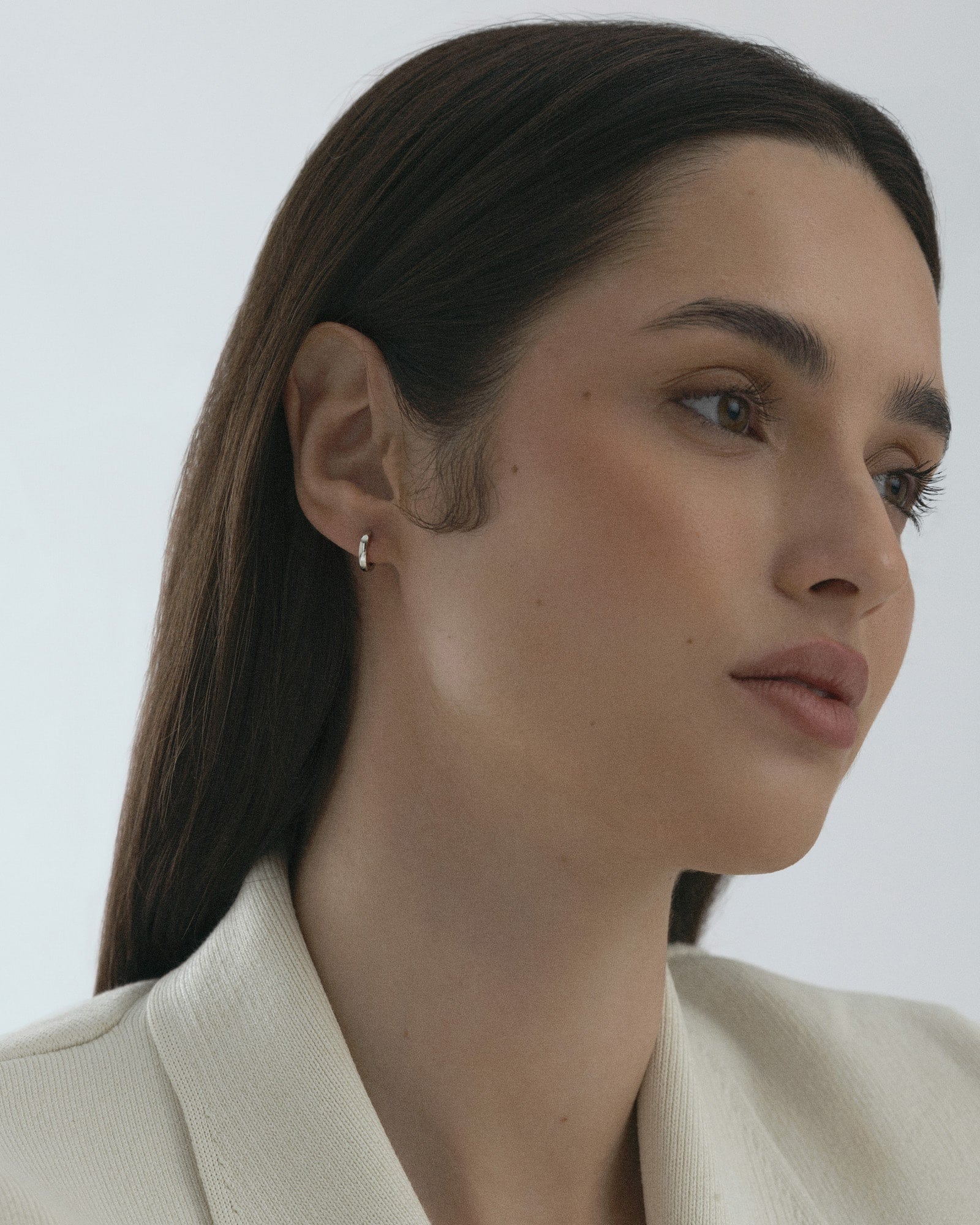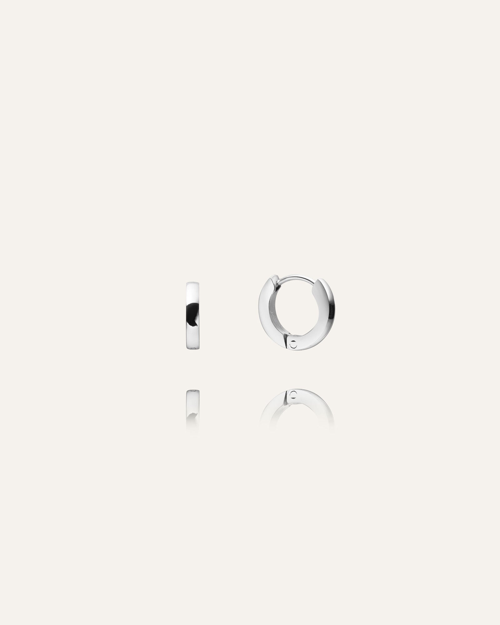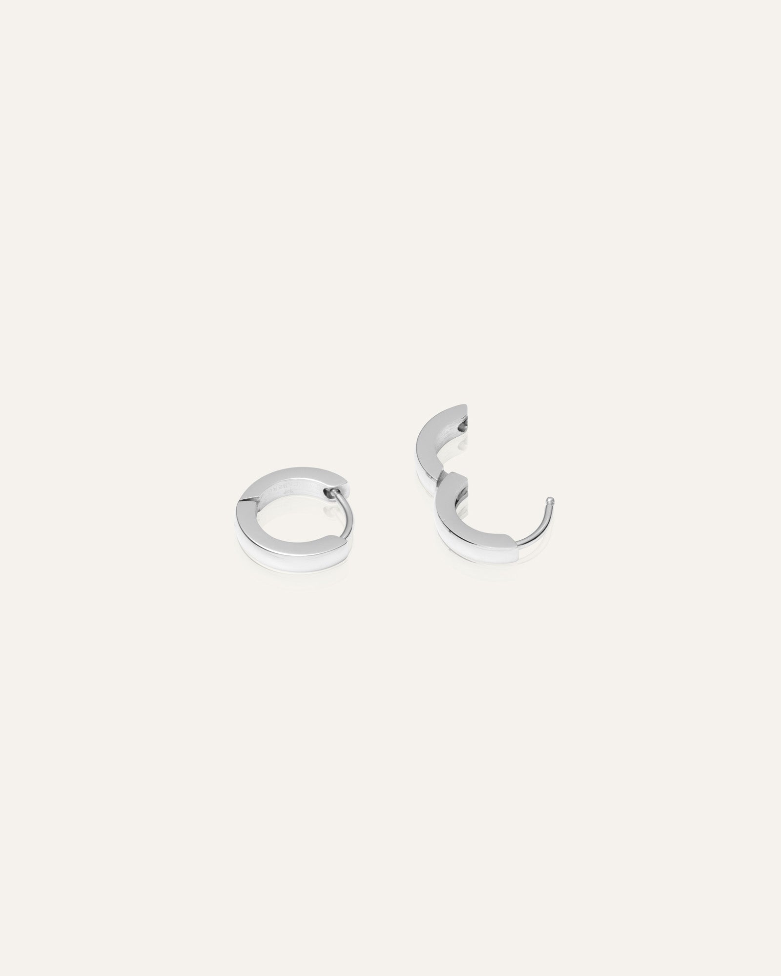 Aros clásicos con cierre de clic, hechos de acero inoxidable macizo. Duraderos y resistentes al agua, estos pendientes conservan su color y elegancia con el tiempo. Perfectos para combinar con nuestros Shiny Hoops.