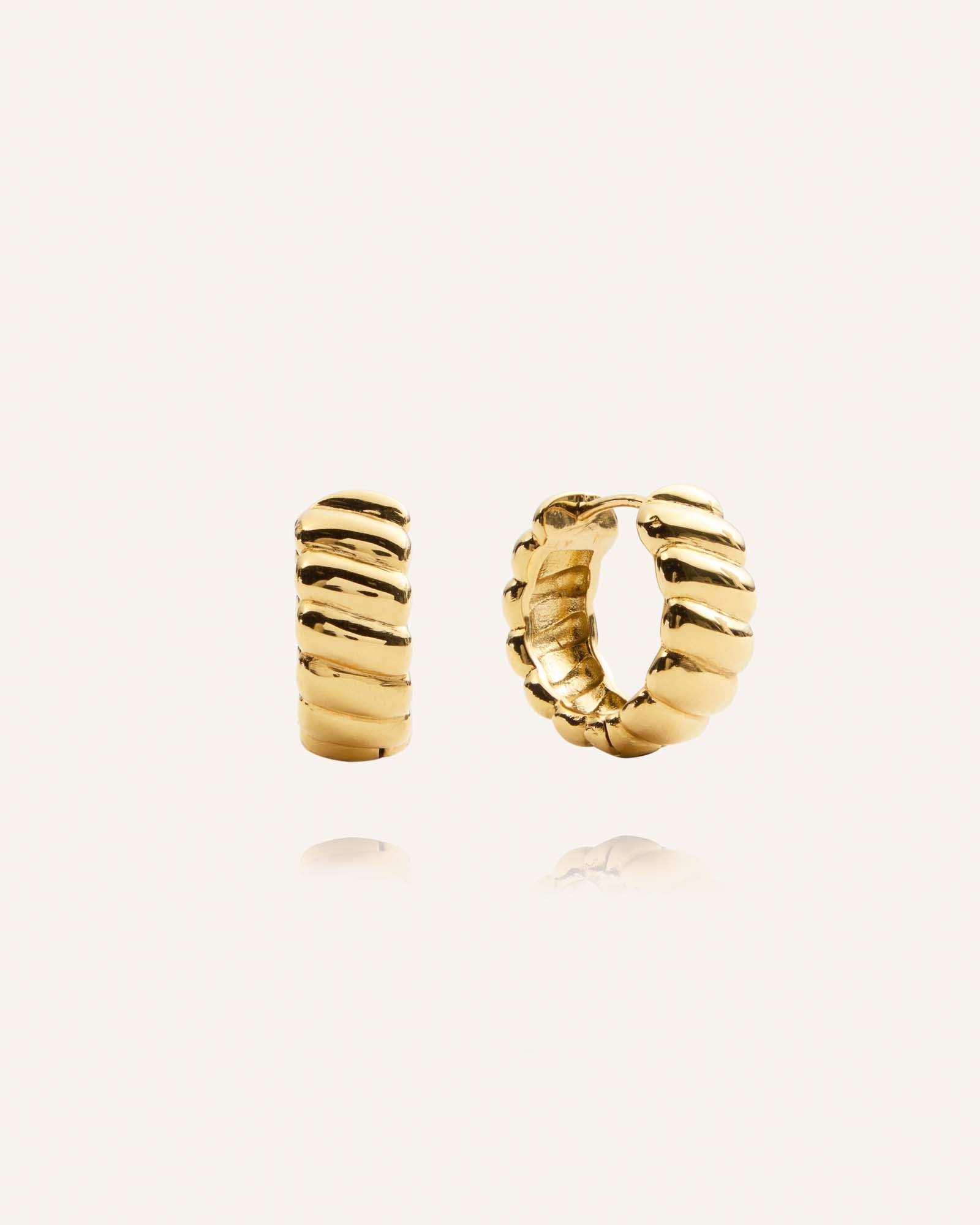 Los Pendientes Curved Ribbed logran el equilibrio perfecto entre detalles clásicos y estilo moderno. Fabricados en acero duradero con revestimiento de oro 18k, son resistentes al agua y están diseñados para acompañarte tanto en momentos cotidianos como en ocasiones especiales.