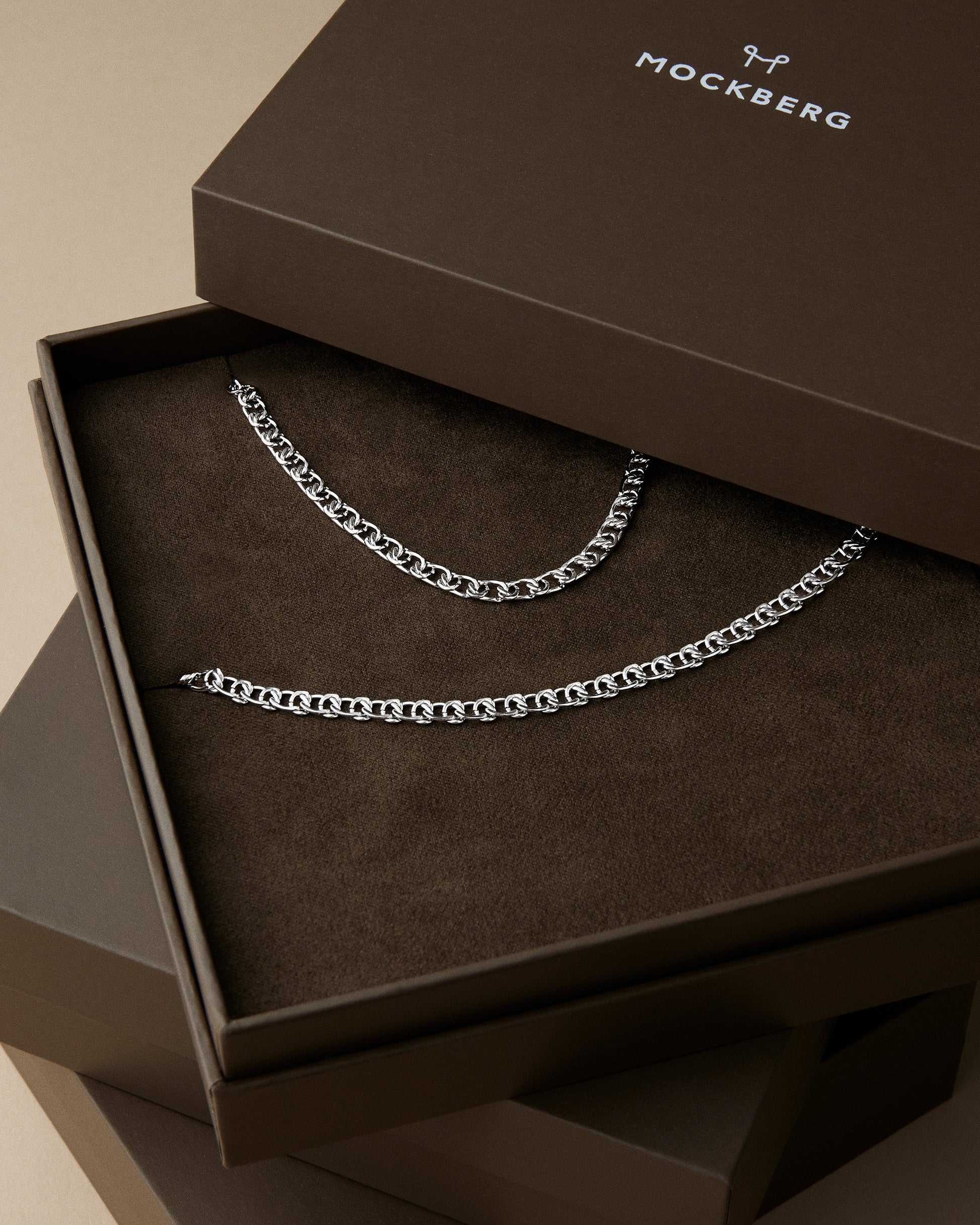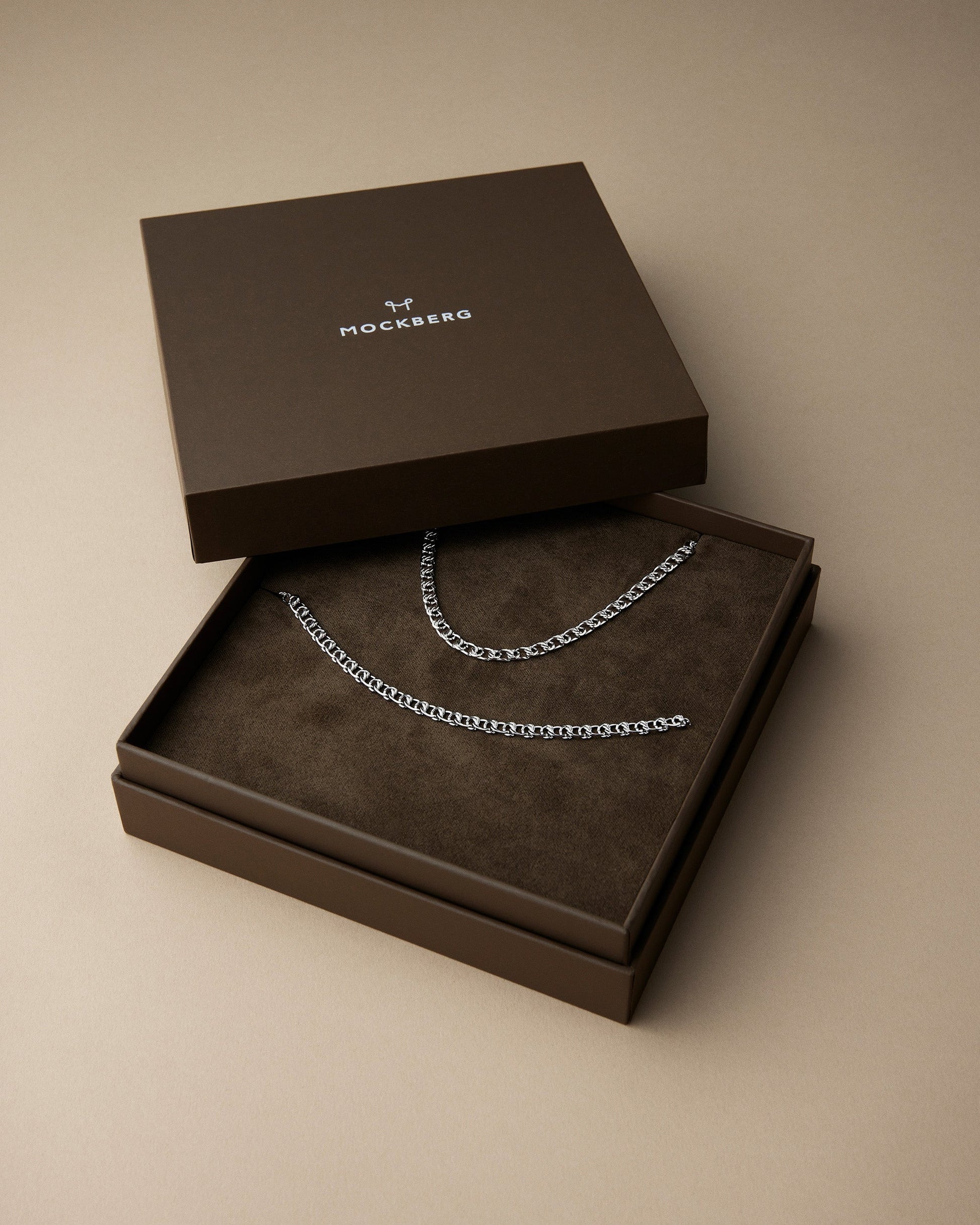 Brillo en dos piezas: un conjunto que enmarca la muñeca y el escote con el mismo look limpio de cadena de eslabones. Usa juntas para una impresión definida y armoniosa o por separado cuando quieras mantenerlo sutil. Duradero, resistente al agua y fácil de estilizar: una elección segura de día a noche.
