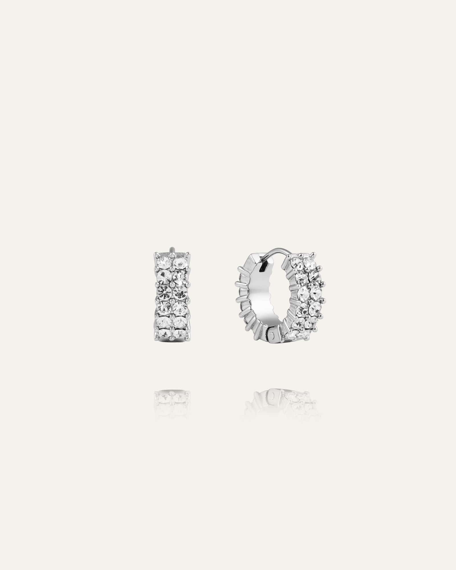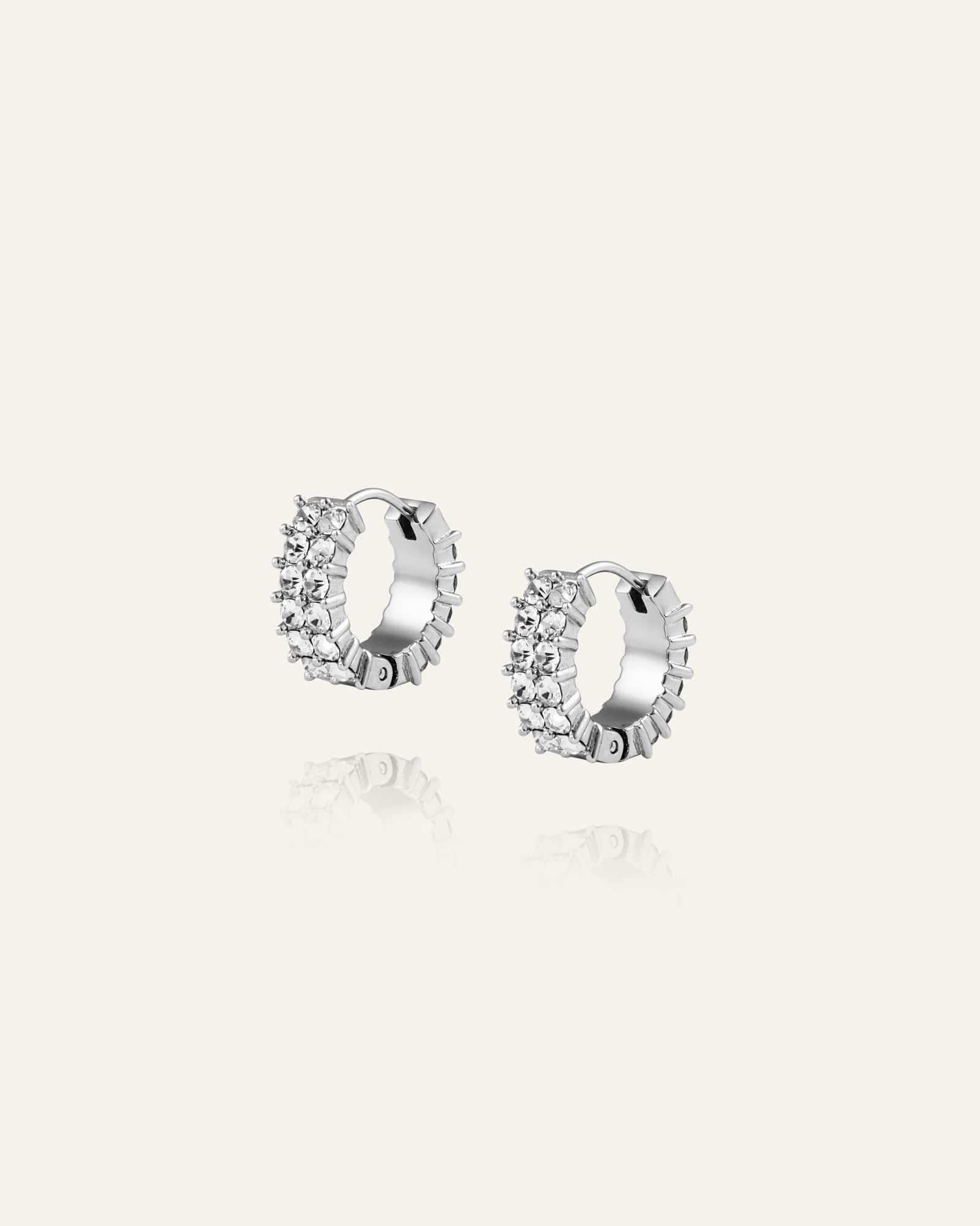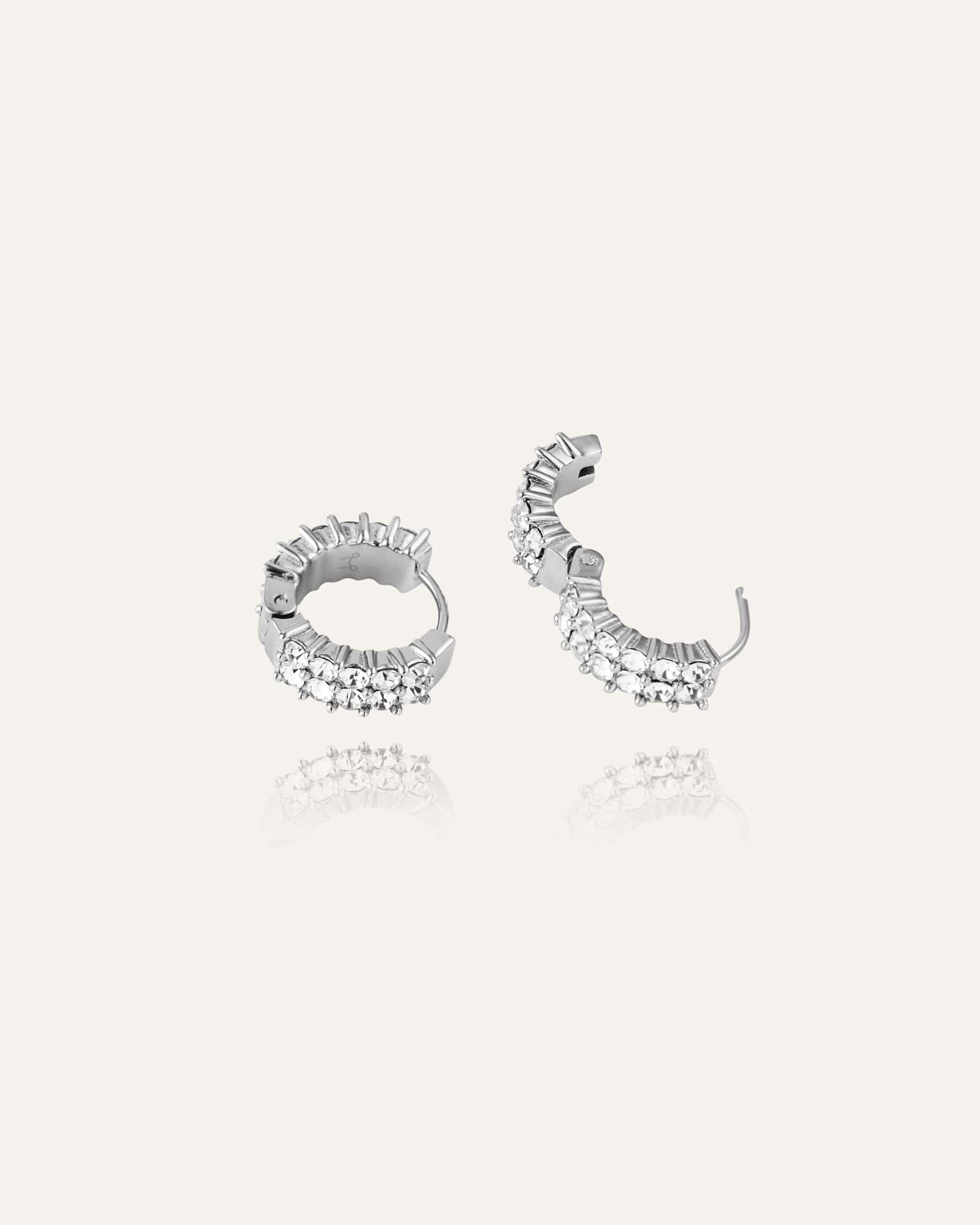 Elegantes aros con brillantes piedras de circonita cúbica. Hechos de acero inoxidable macizo, son duraderos y resistentes al agua, asegurando que conservan su color y estilo con el tiempo.