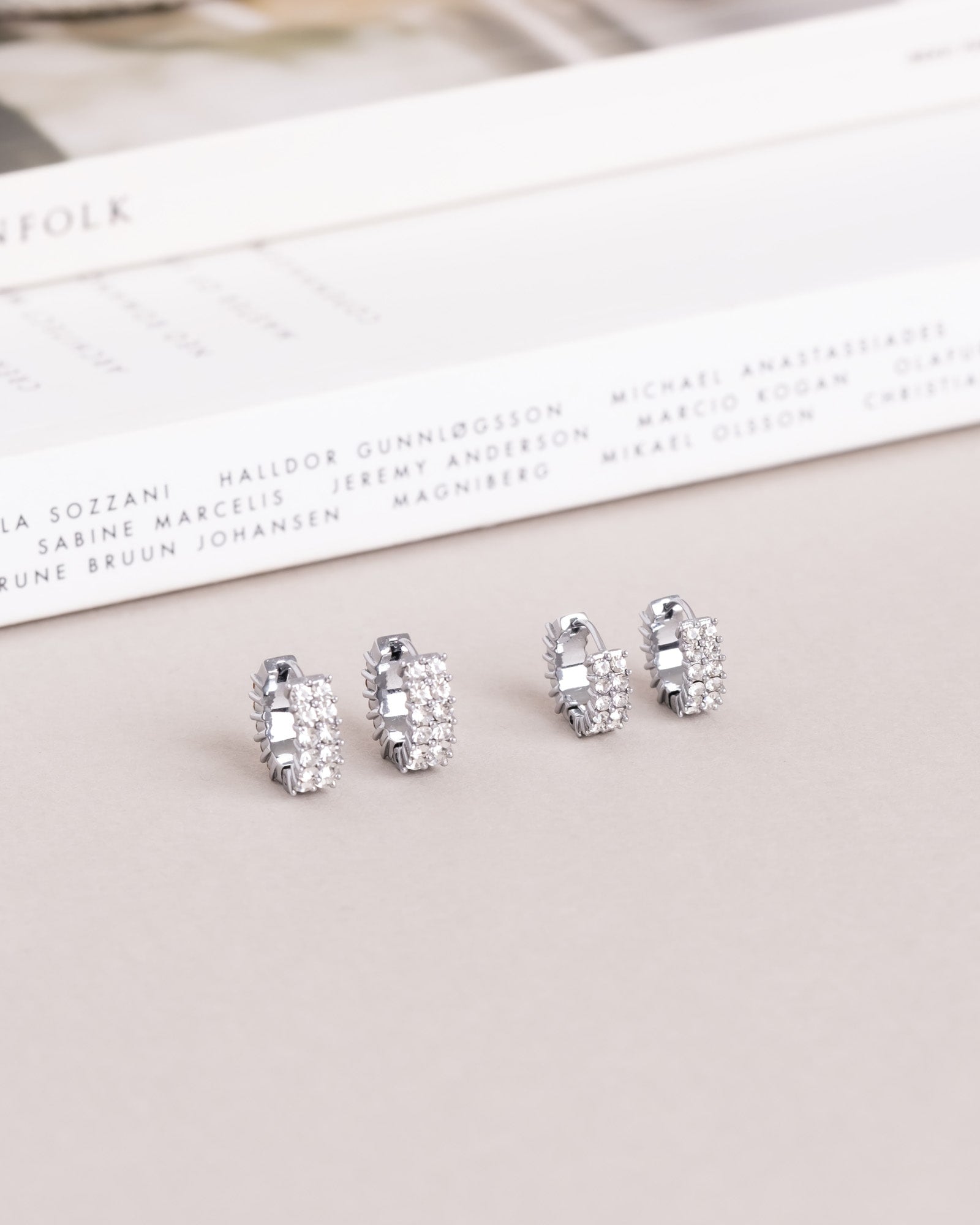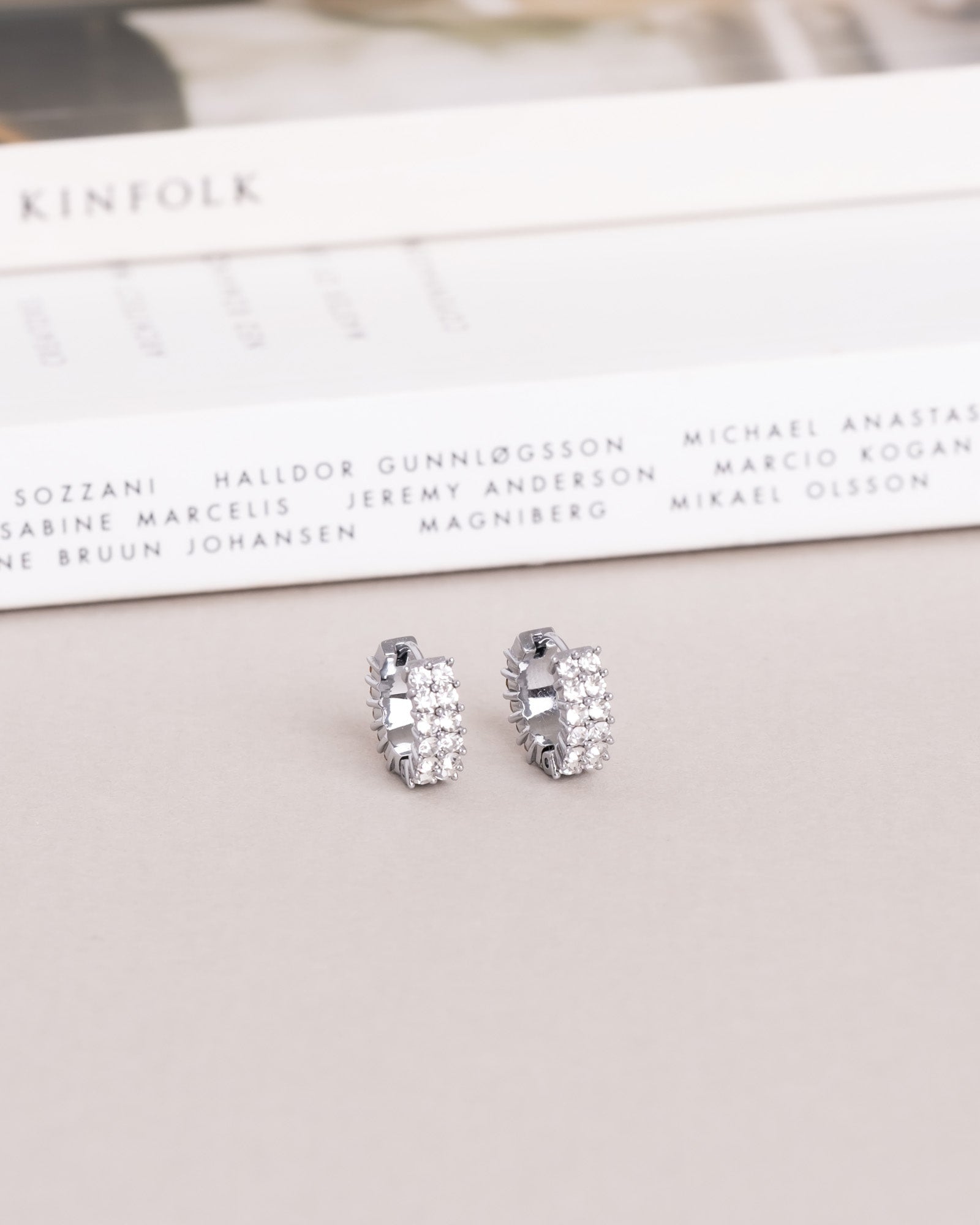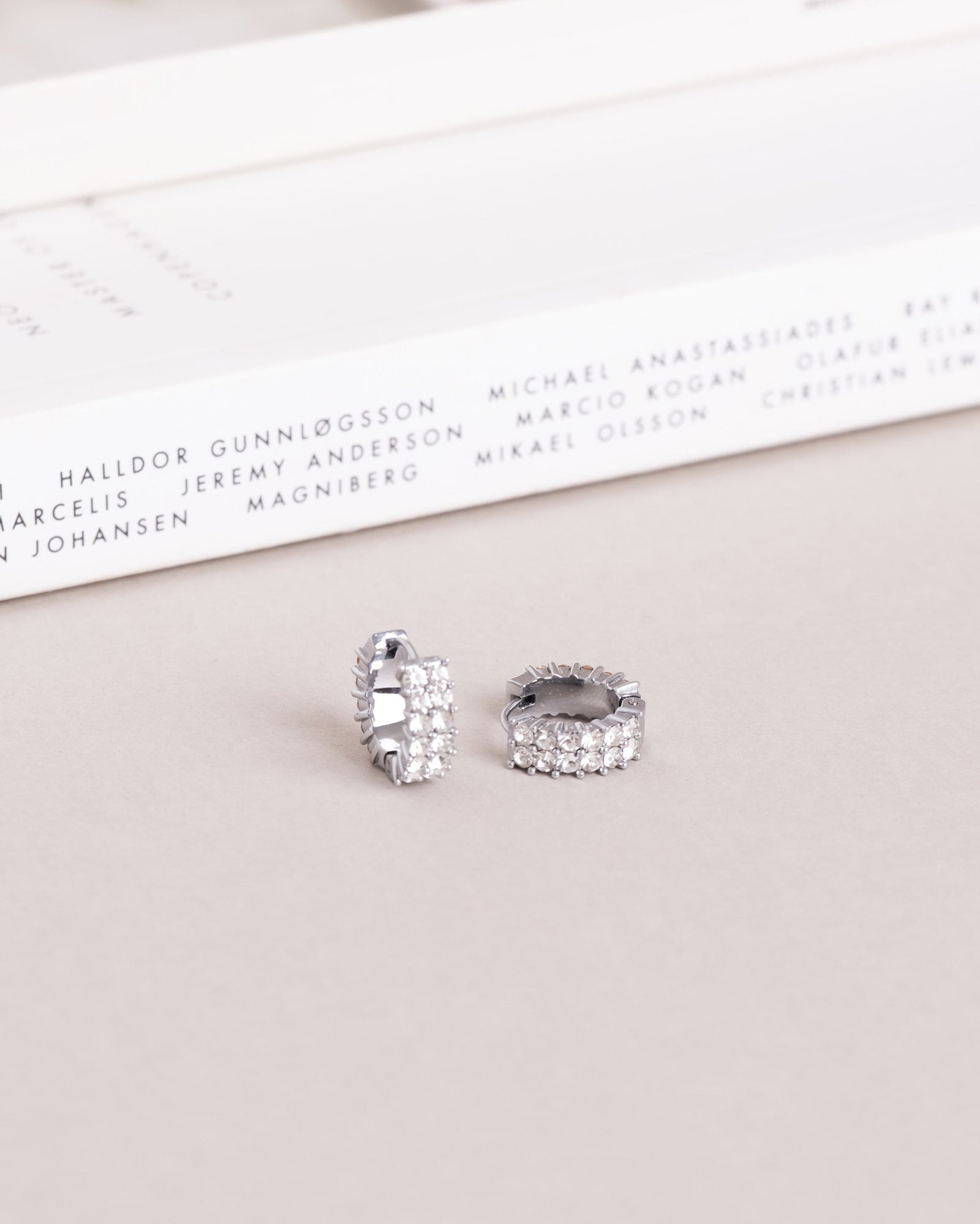 Elegantes aros con brillantes piedras de circonita cúbica. Hechos de acero inoxidable macizo, son duraderos y resistentes al agua, asegurando que conservan su color y estilo con el tiempo.
