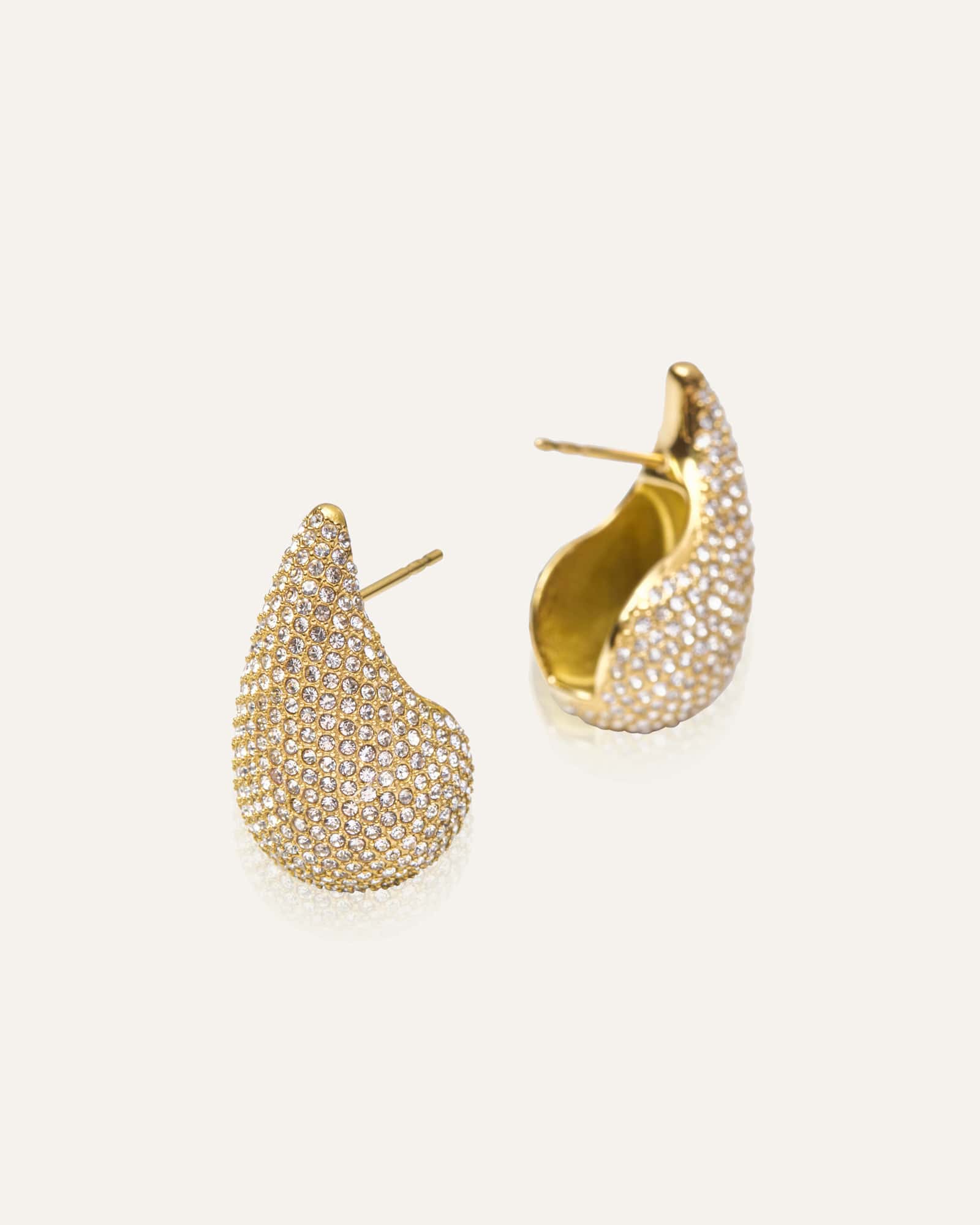En nuestra Colección Pavé, encontrarás los Pendientes Pavé Daring: elegantes pendientes en forma de lágrima con un brillante diseño pavé. Fabricados en acero inoxidable con baño de oro PVD de 18K y adornados con piedras de circonita cúbica, se pueden usar sin perder su color o elegancia con el tiempo. Un diseño atemporal creado para acompañarte a lo largo de la vida.