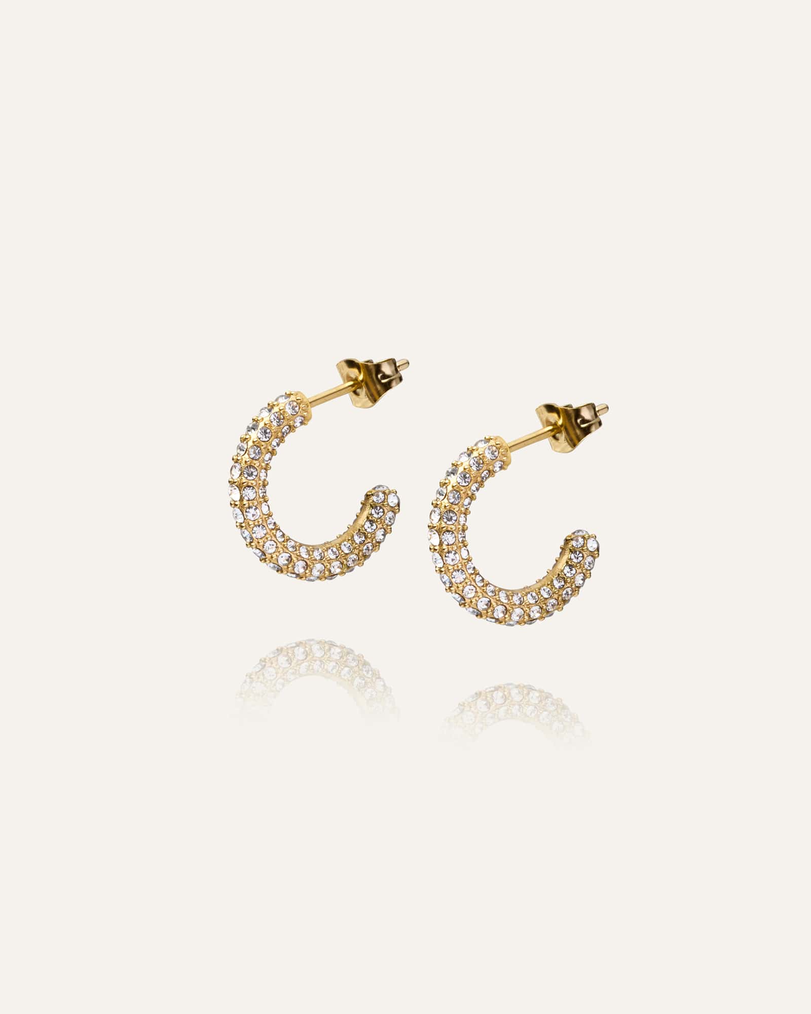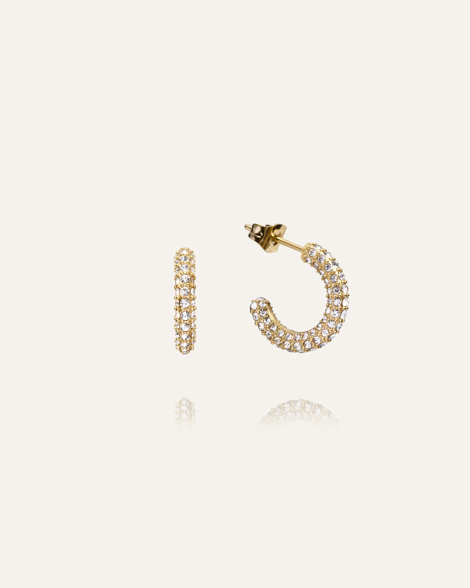 Diseño atemporal con un toque brillante. Los Pendientes Pavé Eternal son aros adornados con piedras de circonita cúbica blanca. Fabricados en acero inoxidable con baño de oro PVD de 18K, son duraderos y resistentes al agua, asegurando que conservan su color y brillo con el tiempo.