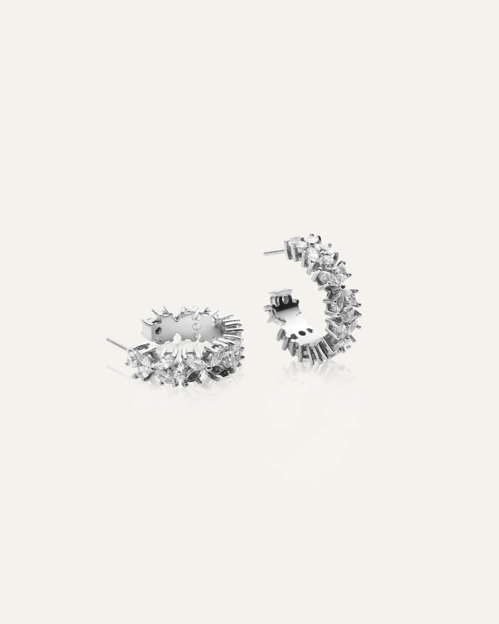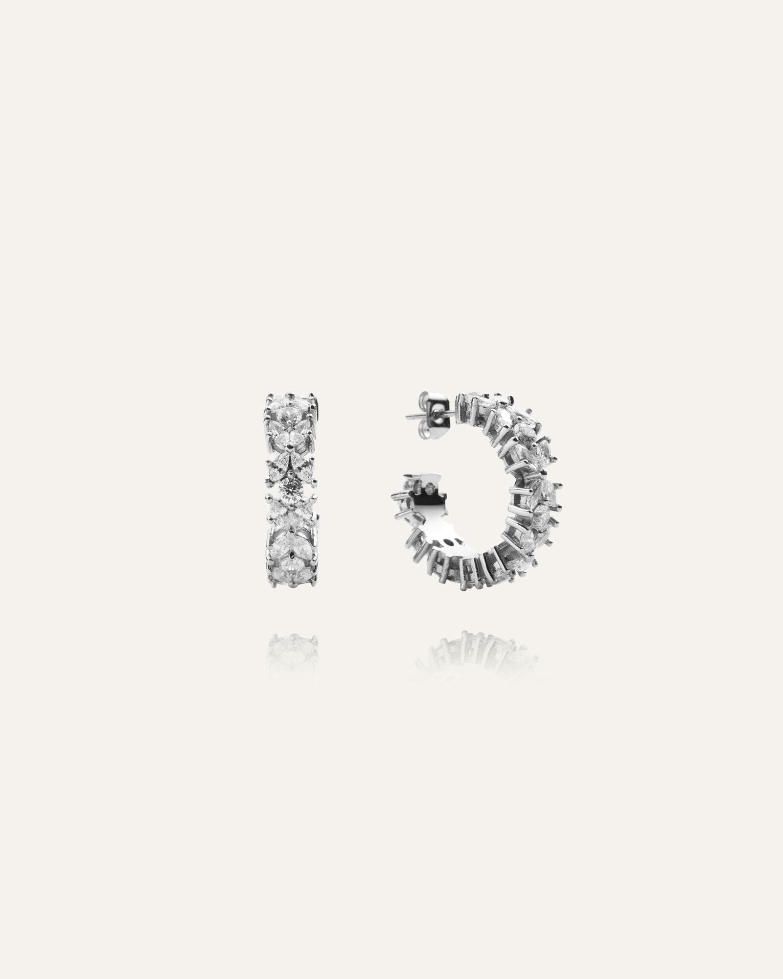 Pendientes elegantes adornados con piedras de circonita cúbica. Fabricados en acero inoxidable, son duraderos y resistentes al agua, asegurando que conserven su color y estilo con el tiempo. Diseñados como un tributo a las mujeres de todo el mundo.