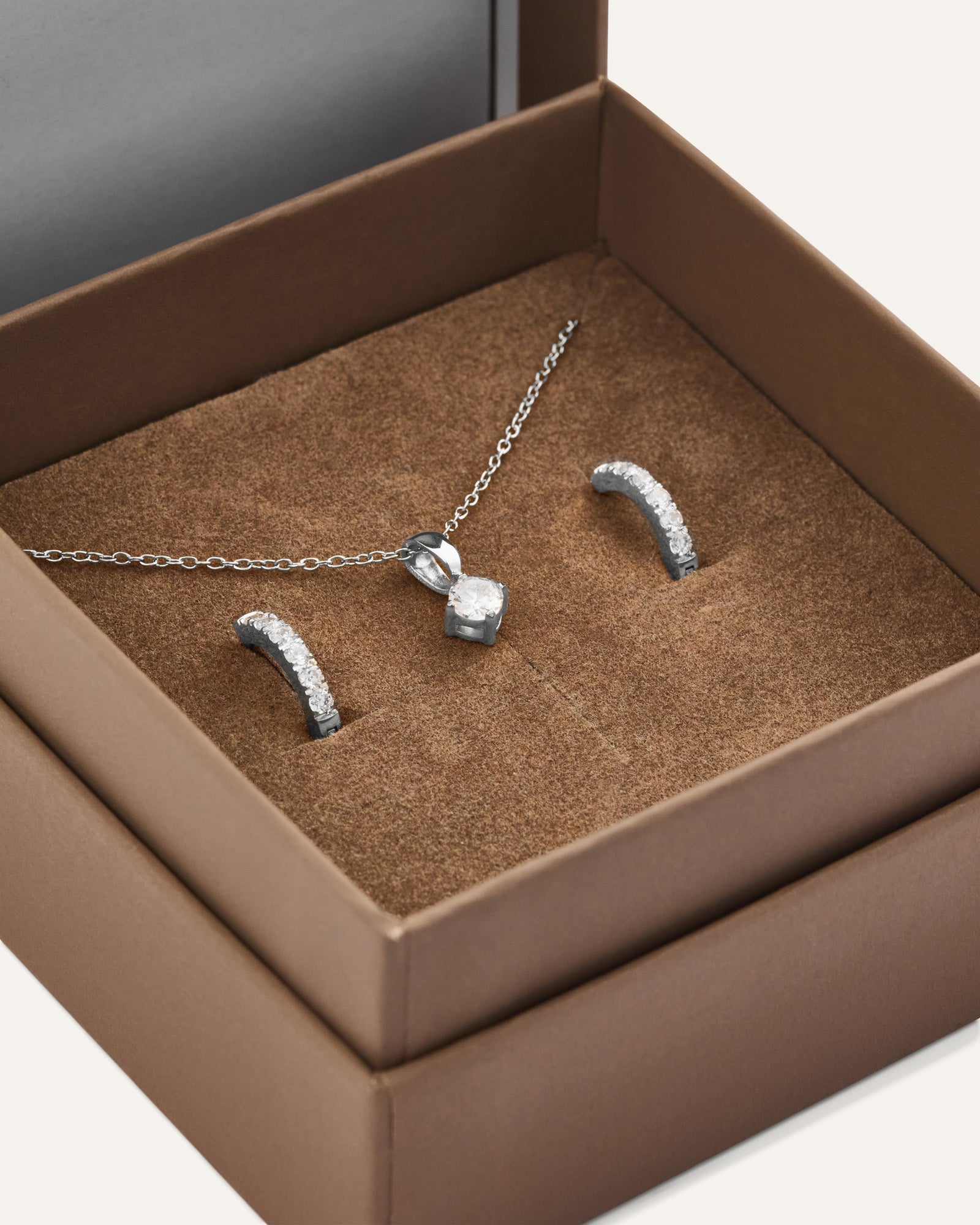 Un elegante conjunto con un collar y nuestros pendientes más vendidos. Diseñado para crear un look atemporal y clásico. El regalo perfecto para alguien que aprecias, o para ti misma.