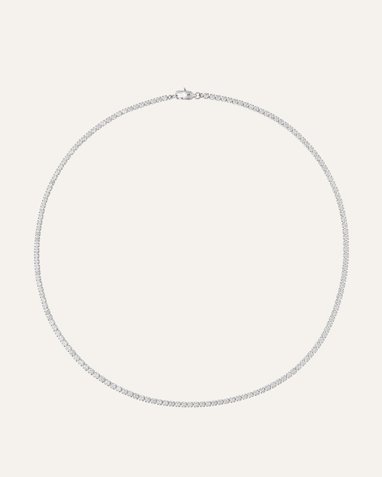 Shiny Tennis Necklace es una versión más fina de nuestro clásico Tennis Necklace, diseñado con brillantes piedras de circonita cúbica a lo largo de toda la cadena. Hecho de acero inoxidable con baño PVD, es duradero y resistente al agua, asegurando que conserva su color y brillo con el tiempo. Perfecto para llevar solo o en capas con otros collares.