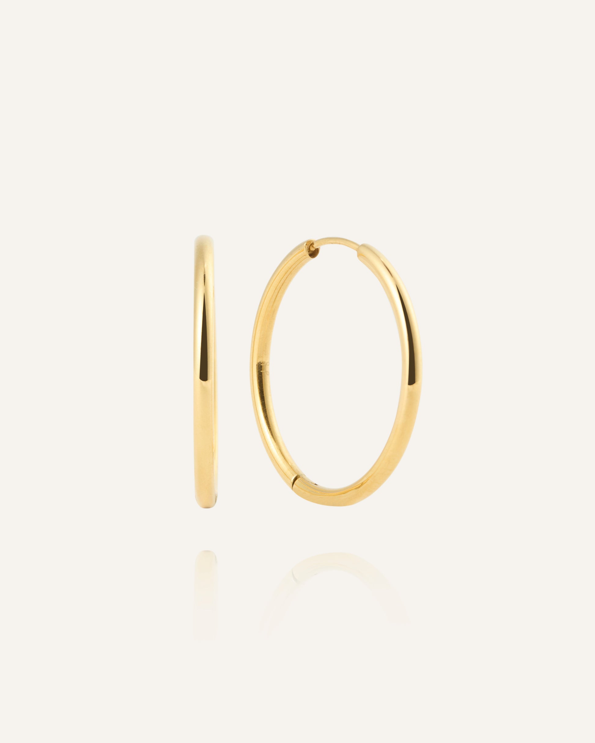 Los Aros Slim Gold presentan una forma delgada y suavemente redondeada que brilla con un tono dorado cálido. El diseño atemporal ofrece un look limpio y es fácil de usar y estilizar de día a noche. Úsalos solos para un estilo sencillo o combínalos con otros pendientes para un toque personal.