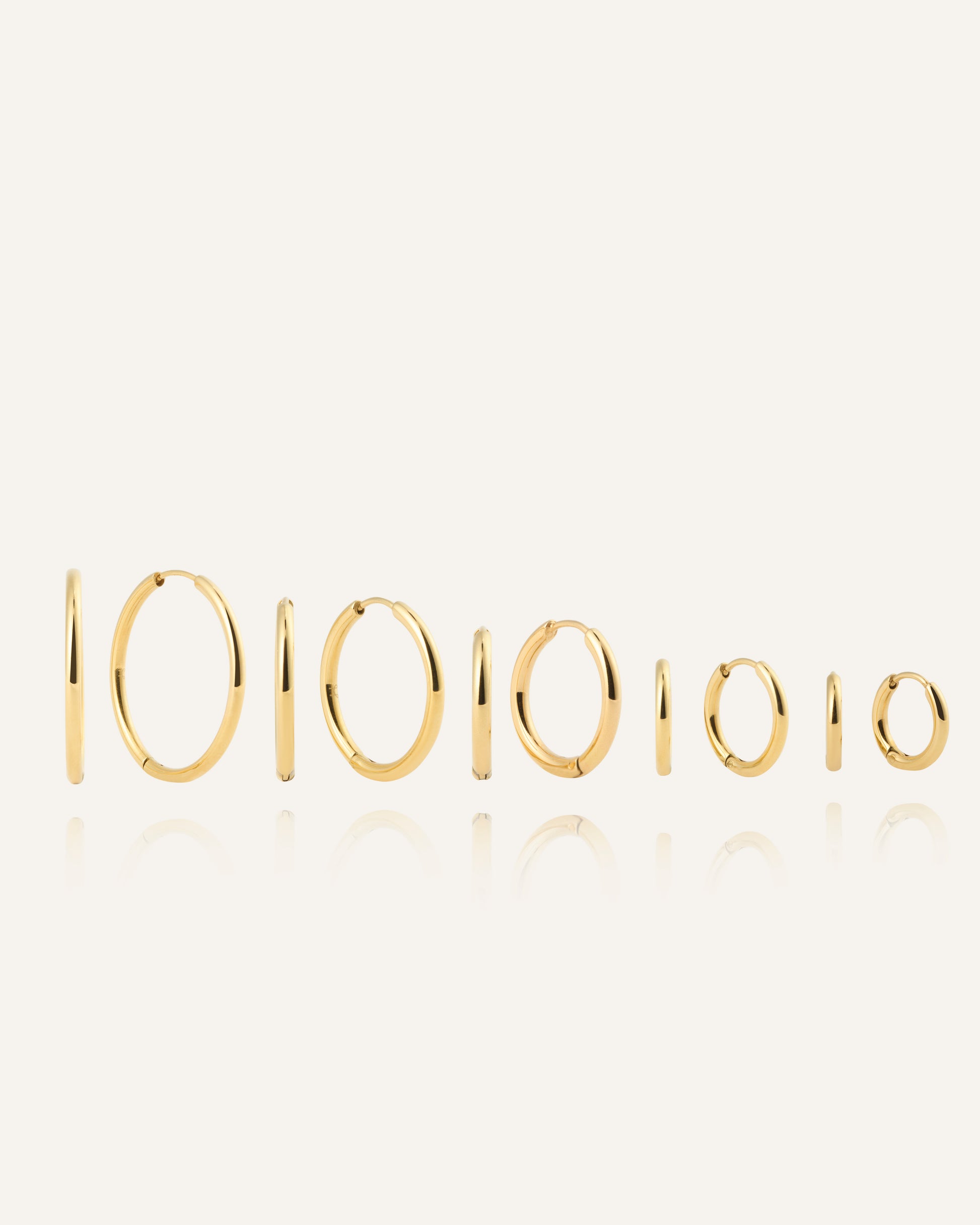 Los Aros Slim Gold presentan una forma delgada y suavemente redondeada que brilla con un tono dorado cálido. El diseño atemporal ofrece un look limpio y es fácil de usar y estilizar de día a noche. Úsalos solos para un estilo sencillo o combínalos con otros pendientes para un toque personal.