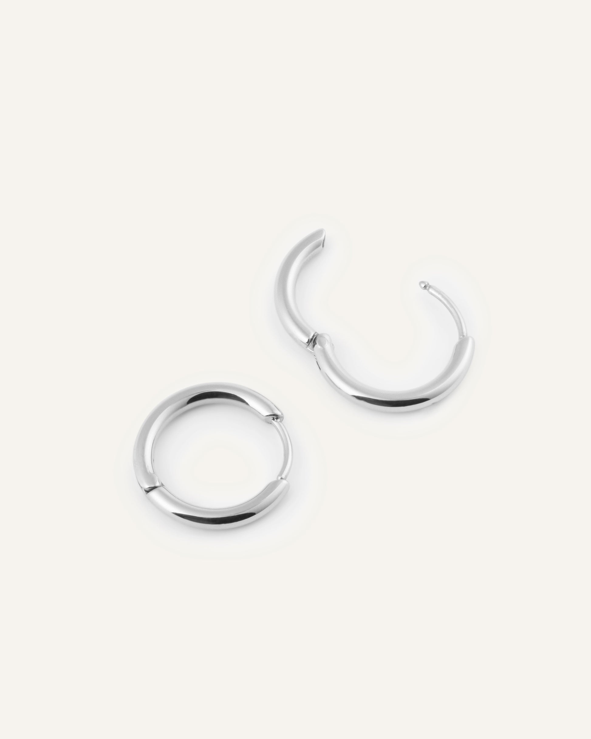 Los Aros Slim Steel presentan un perfil delgado y elegante que atrapa la luz en un tono plateado nítido. El diseño sencillo ofrece un acabado limpio que funciona igual de bien solo que en capas con otros pendientes.