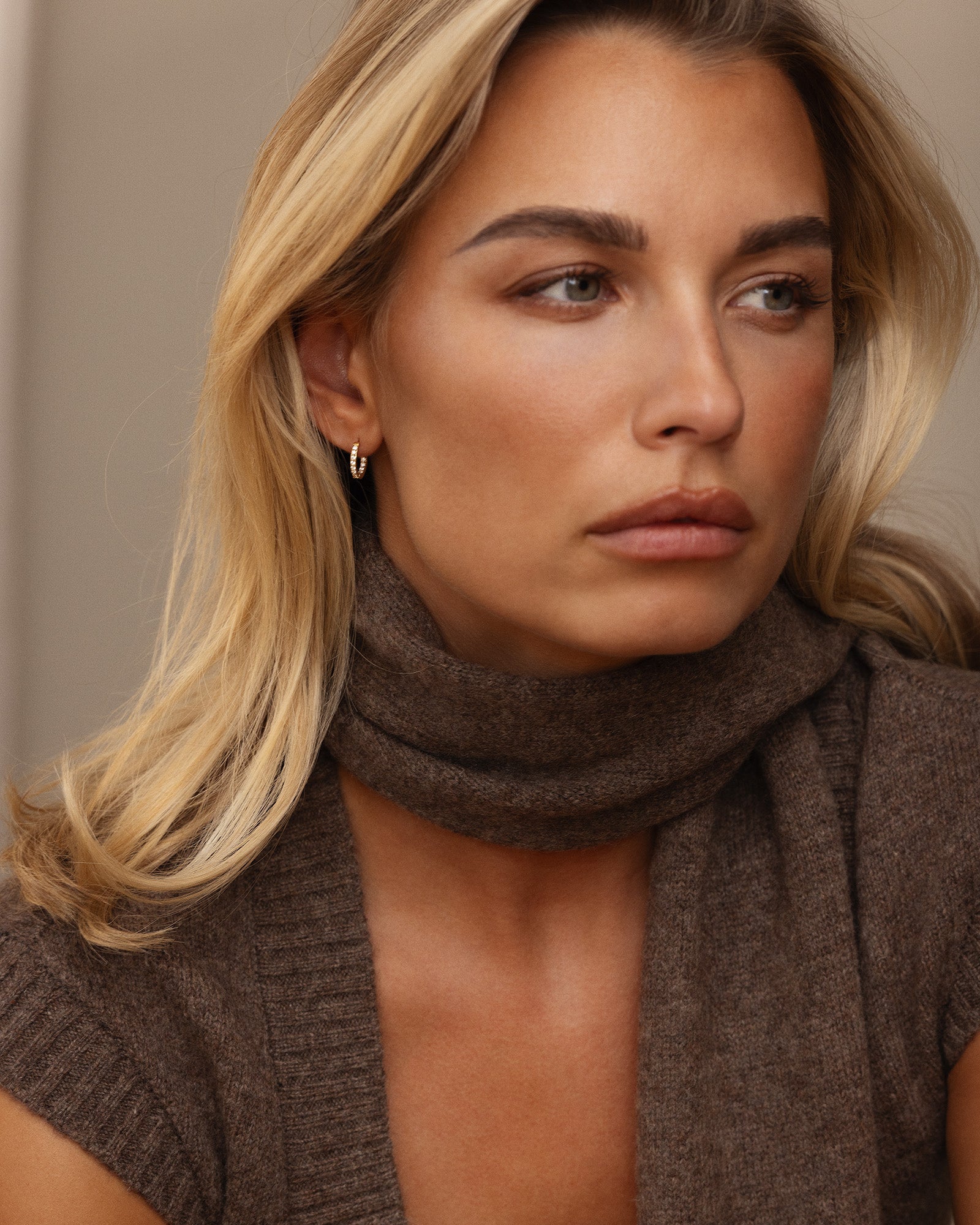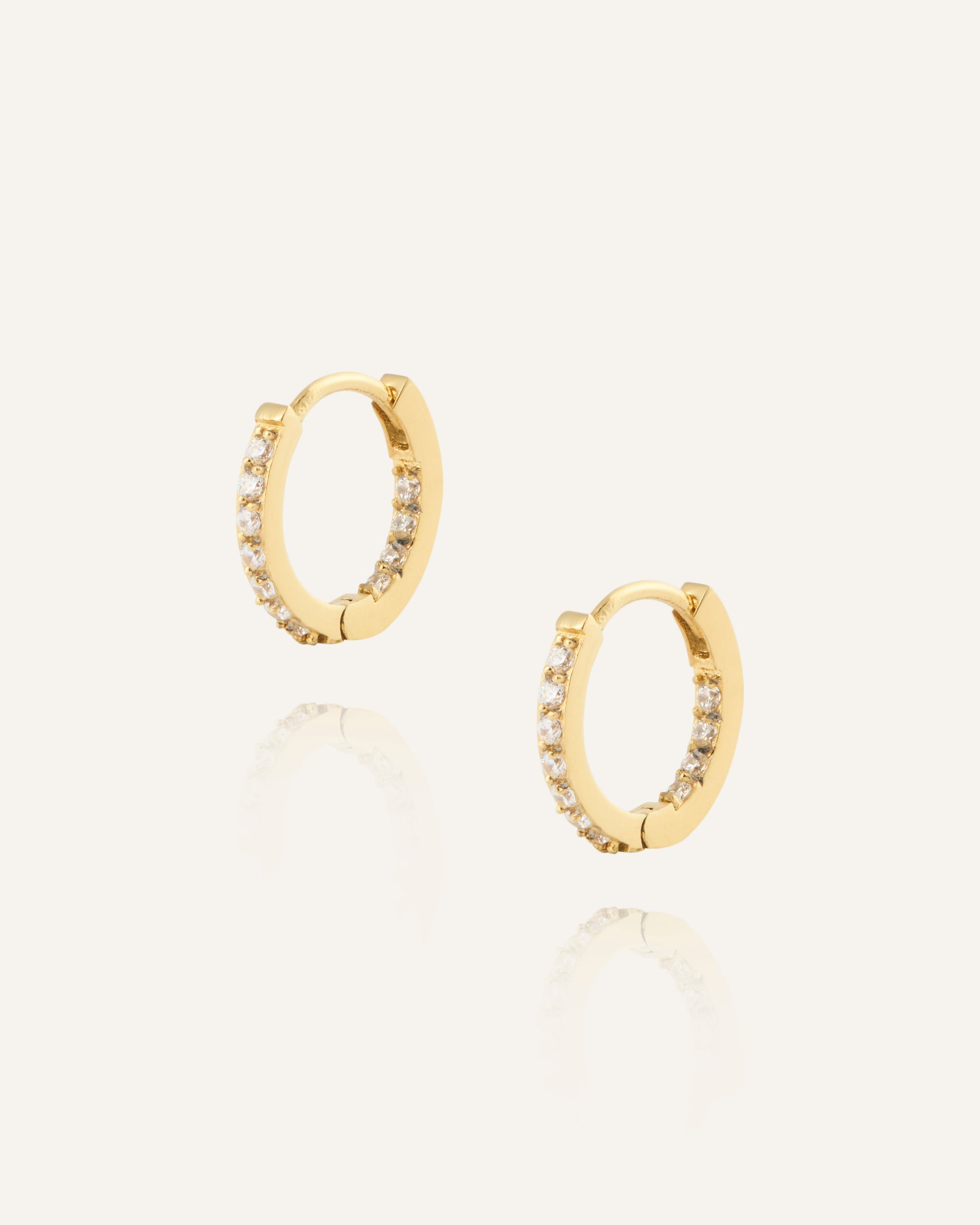 Los Aros Sparkle brillan suavemente en tono dorado. Los aros delgados están adornados con circonia cúbica blanca que atrapa la luz con cada movimiento. Fáciles de usar, fáciles de estilizar: de día a noche.