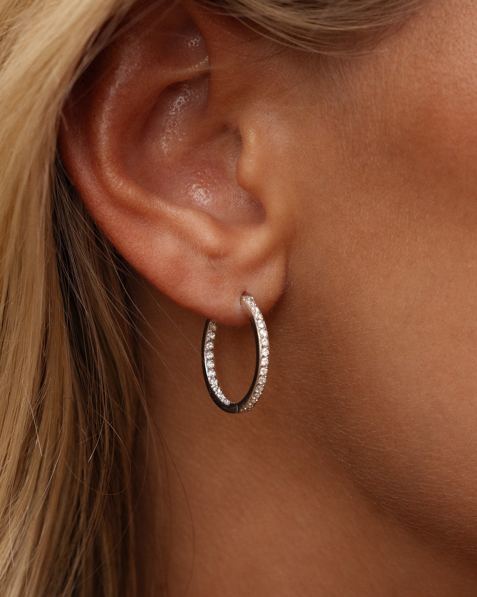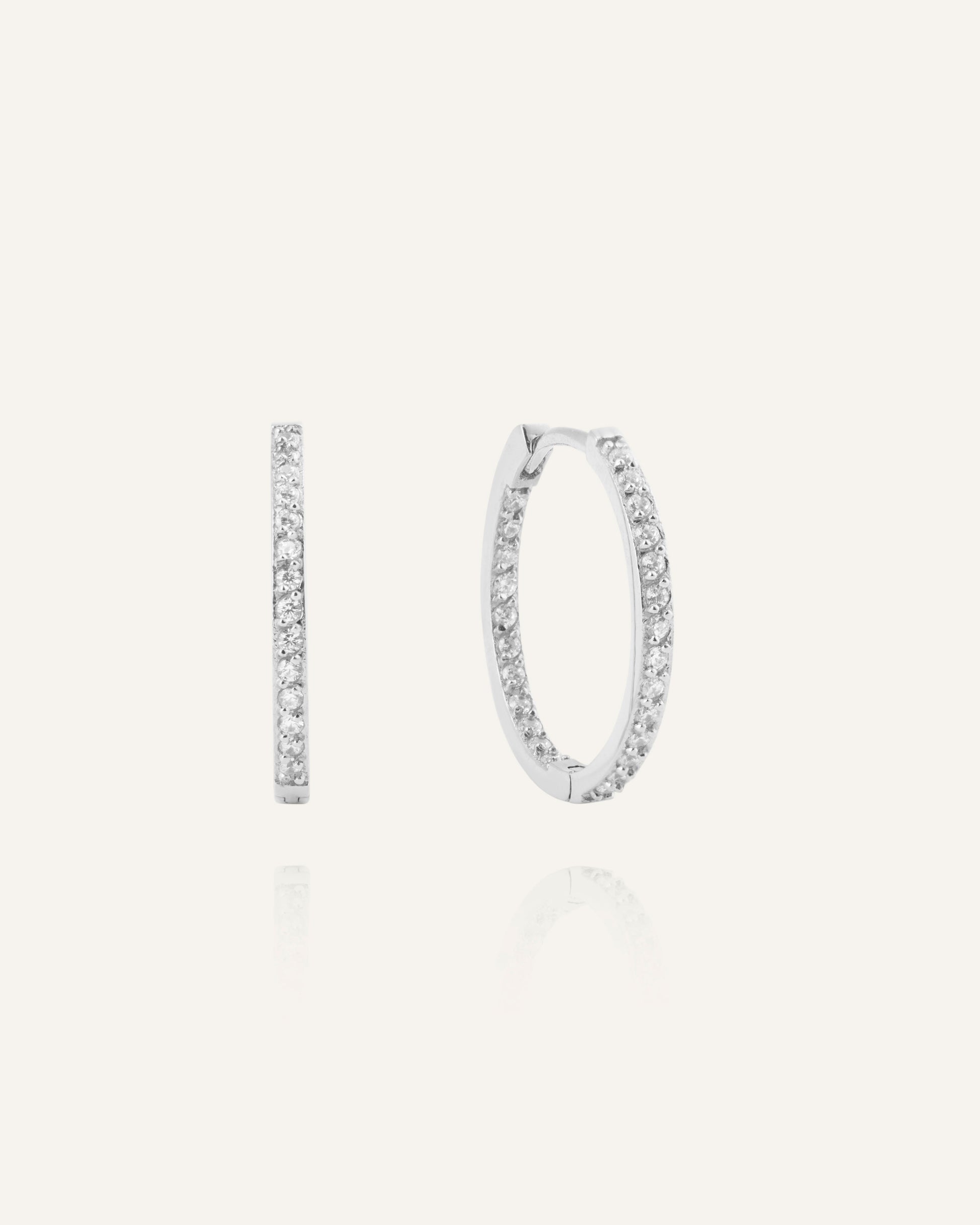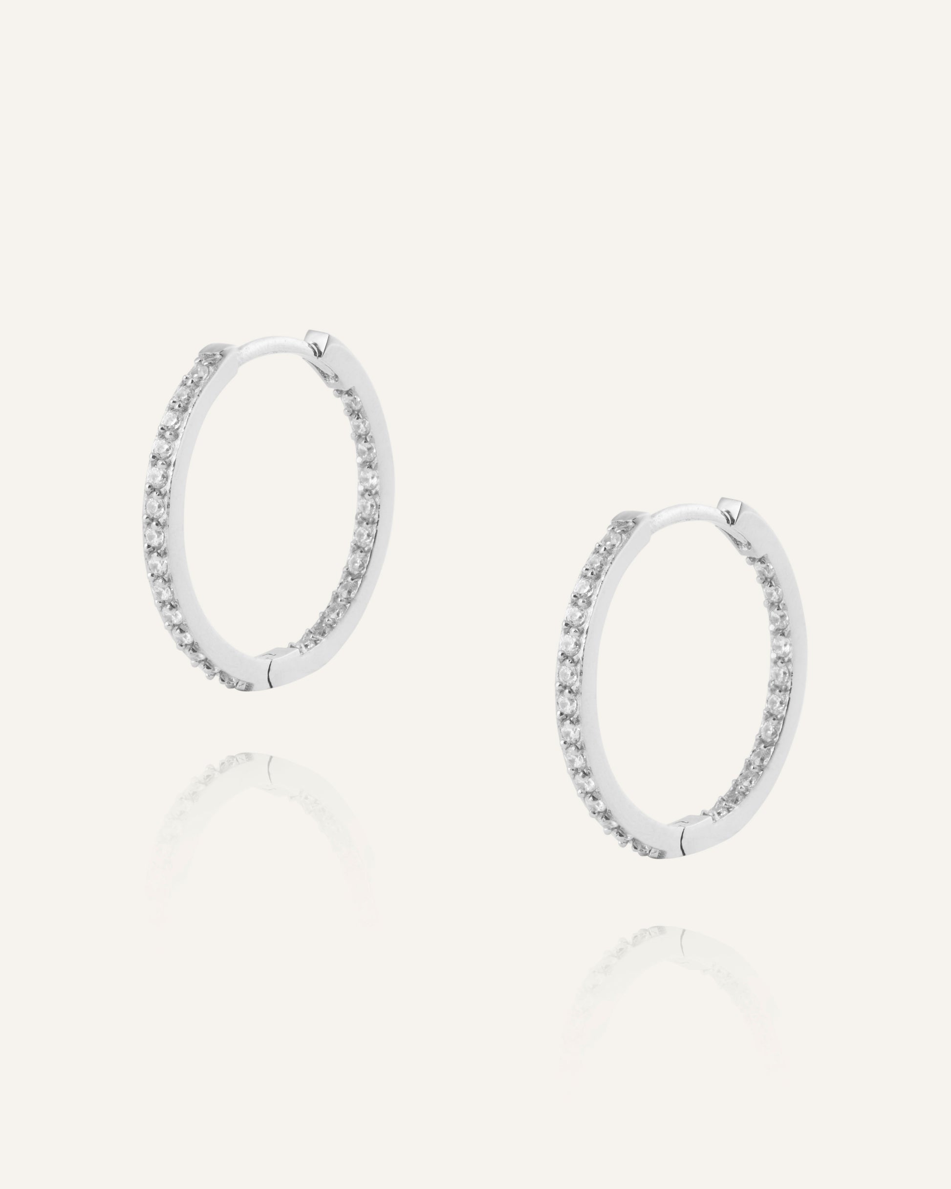 Los Aros Sparkle brillan suavemente en tono plateado. Los aros delgados están adornados con circonia cúbica blanca que atrapa la luz con cada movimiento. Fáciles de usar, fáciles de estilizar: de día a noche.