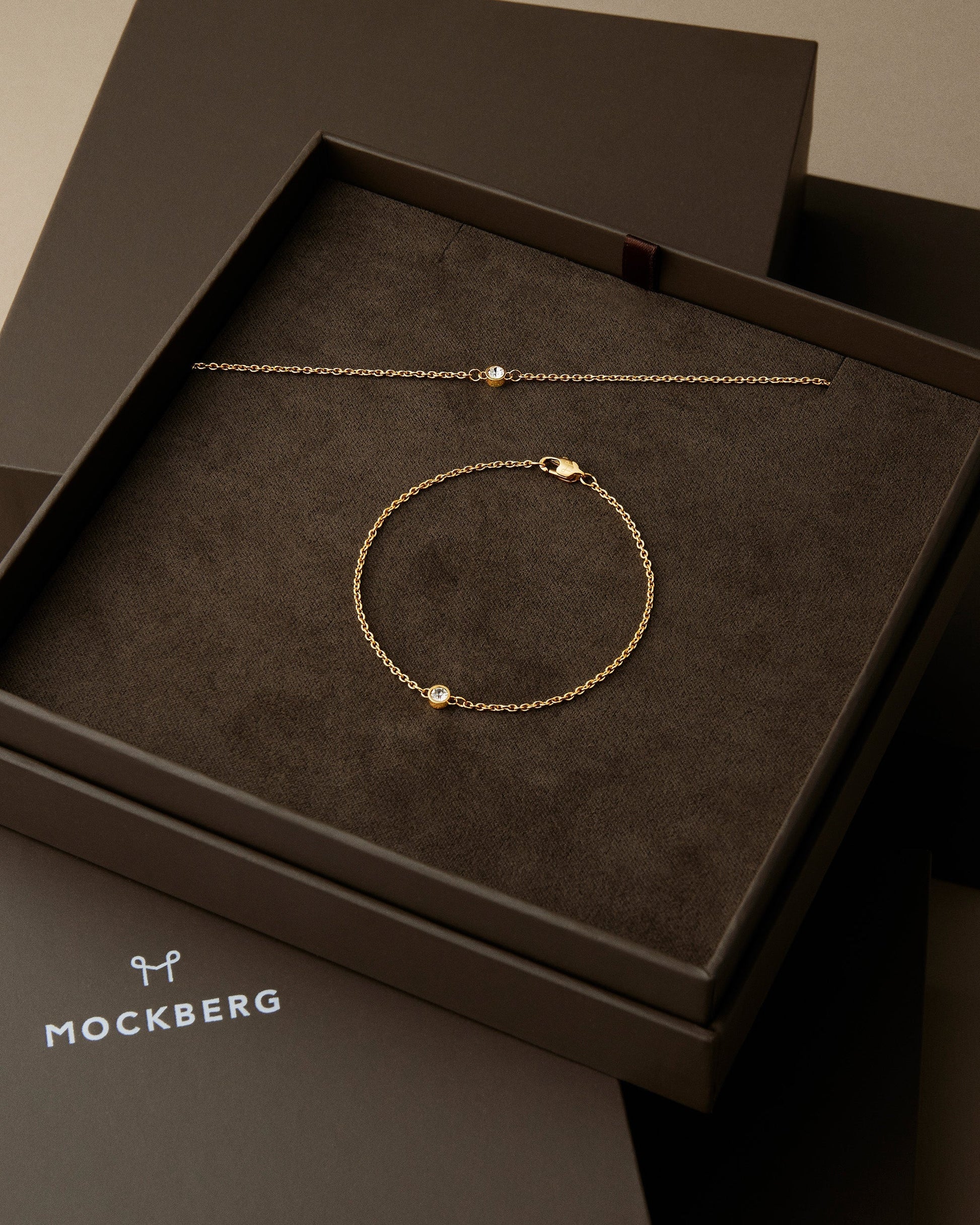 Piedra clara, cadena fina: dos piezas que siempre se sienten bien. Thin Diamond en tono dorado añade un brillo tranquilo cerca de la piel: usa como conjunto para una línea armoniosa o por separado cuando quieras mantenerlo simple. Acero duradero con revestimiento PVD de oro 18K que conserva su brillo con el tiempo.