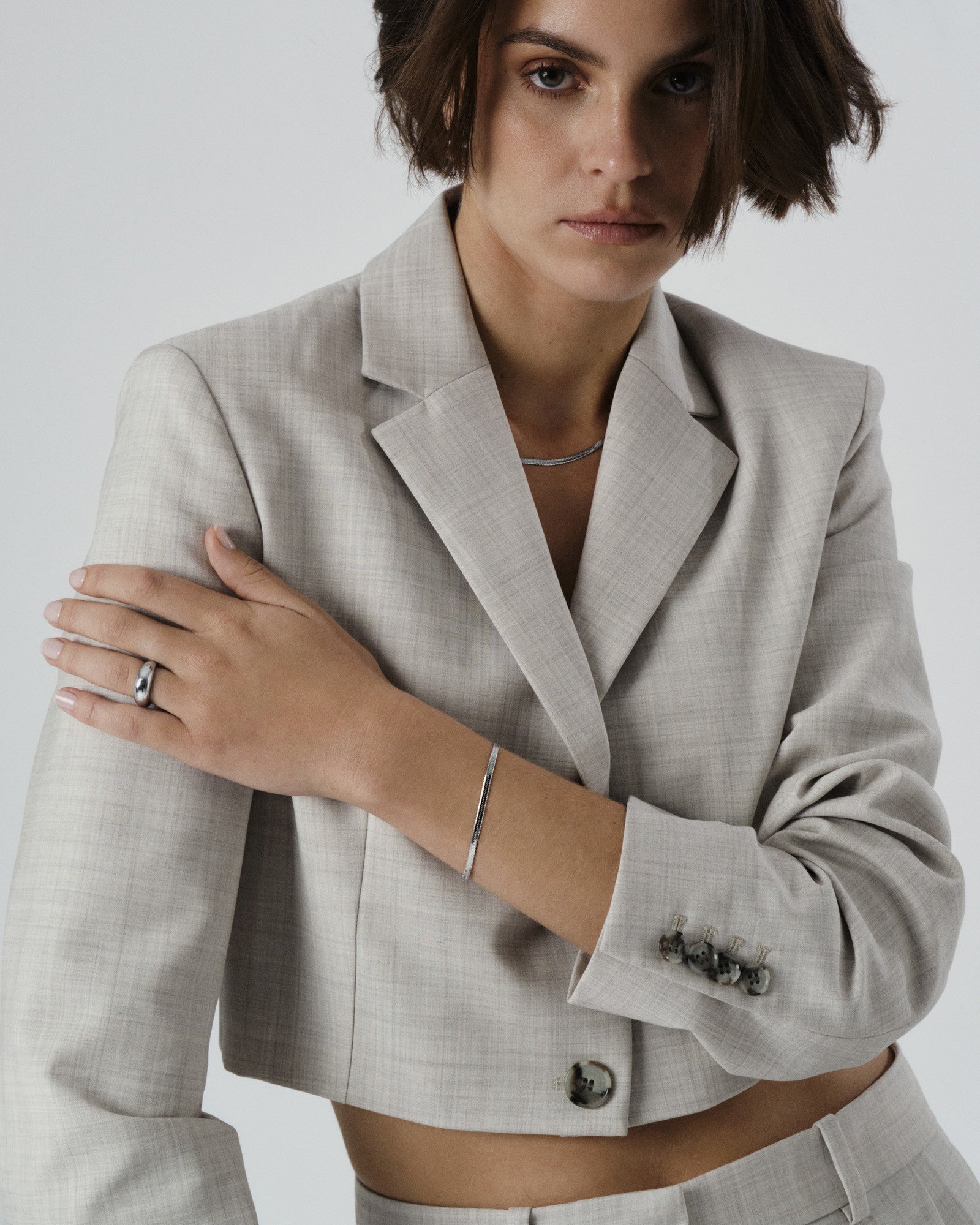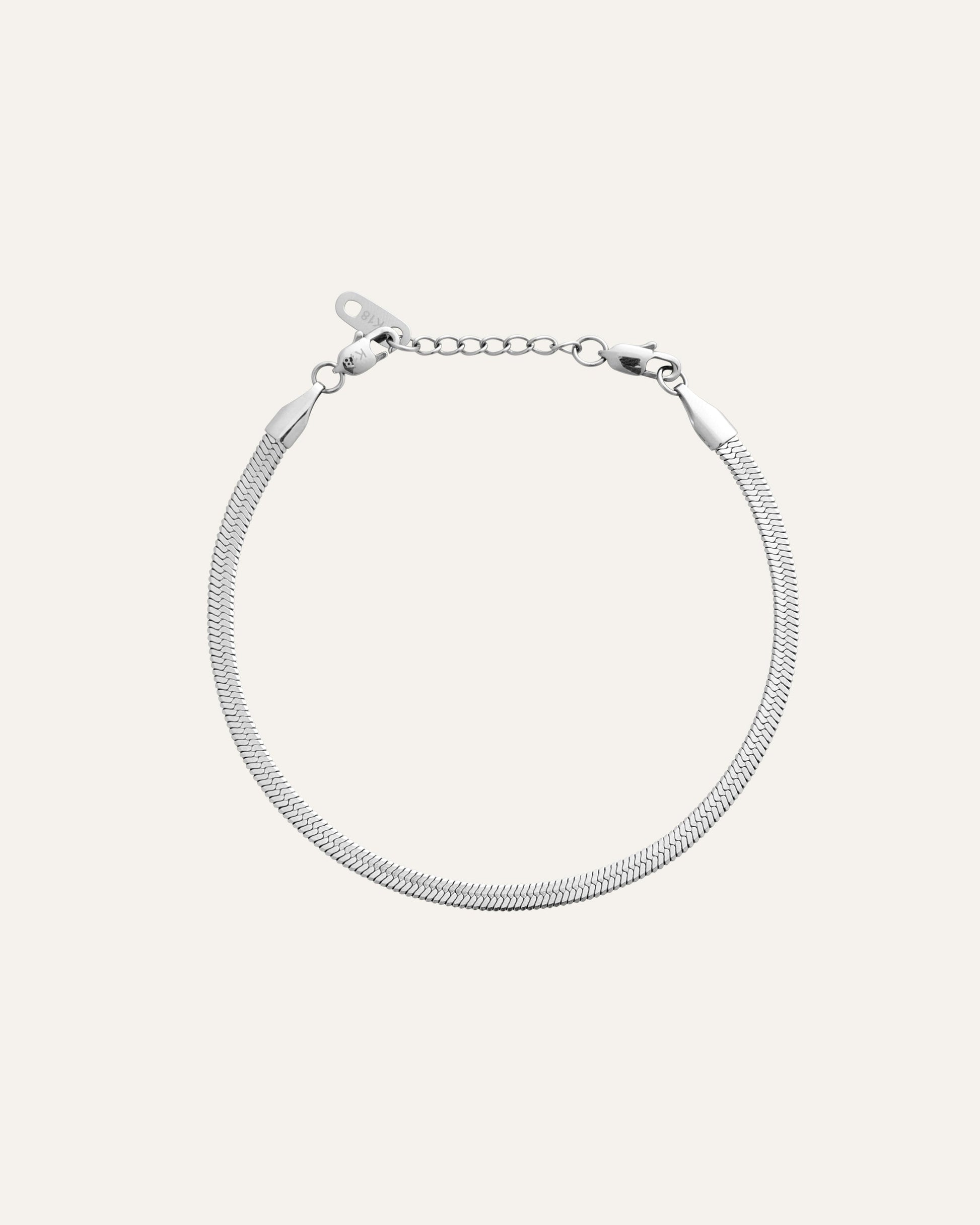 Una pulsera elegante con un diseño de flujo suave. Combínala con el collar Thin Snake para un look elegante y coordinado. Hecha de acero inoxidable con baño PVD, es duradera y resistente al agua, asegurando que conserva su color y brillo con el tiempo. La cadena de extensión se puede quitar fácilmente para un ajuste personalizado.
