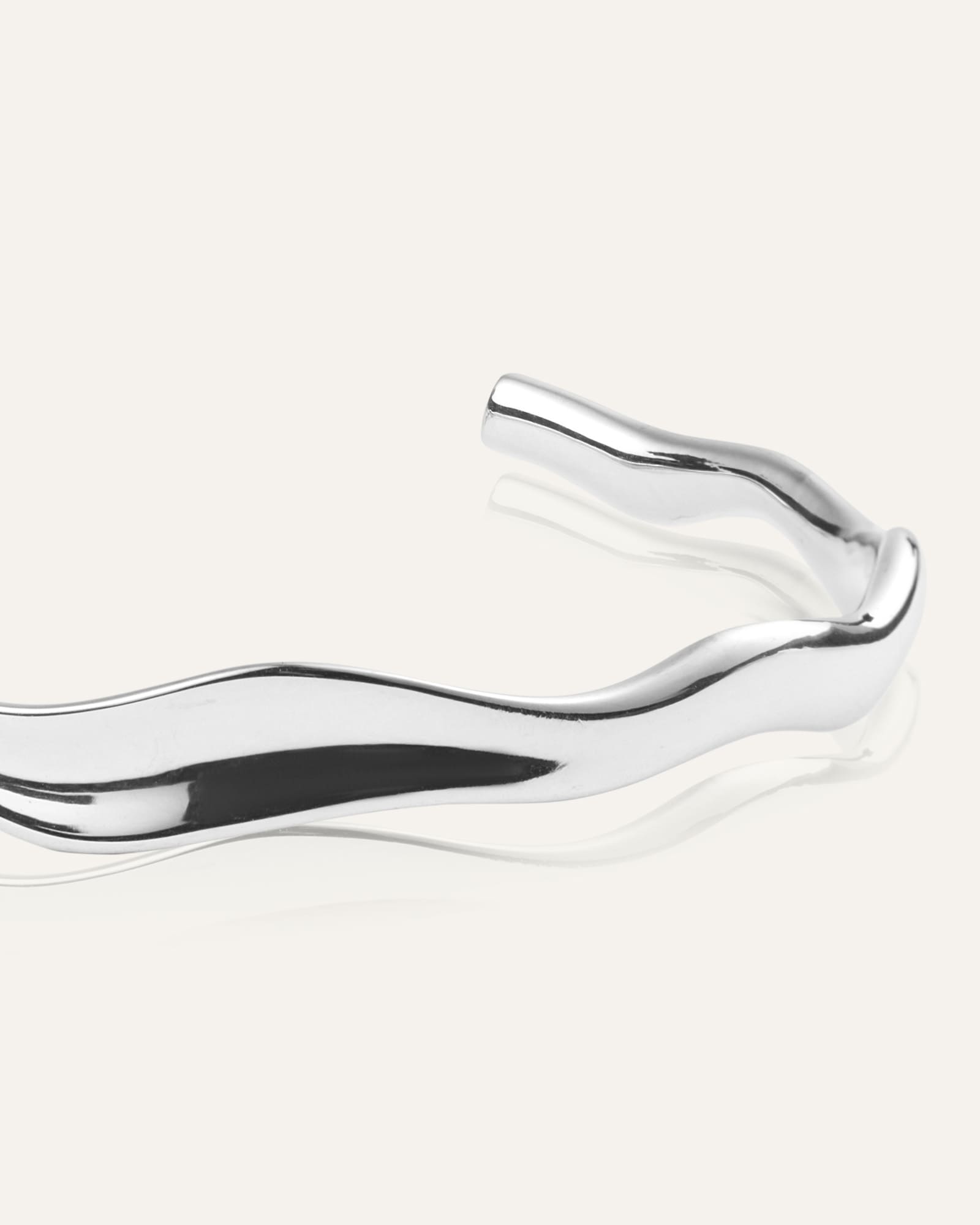 Wavy Bolded Cuff Bracelet es una elegante pulsera con un diseño en forma de onda de nuestra colección Wavy. Hecha de acero inoxidable con baño PVD, es duradera y resistente al agua, asegurando que conserva su color y brillo con el tiempo. El diseño abierto proporciona un ajuste flexible que se adapta suavemente a tu muñeca.